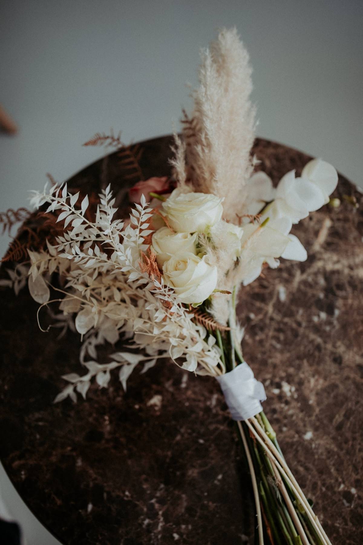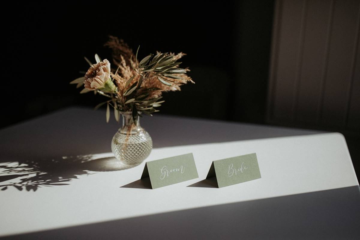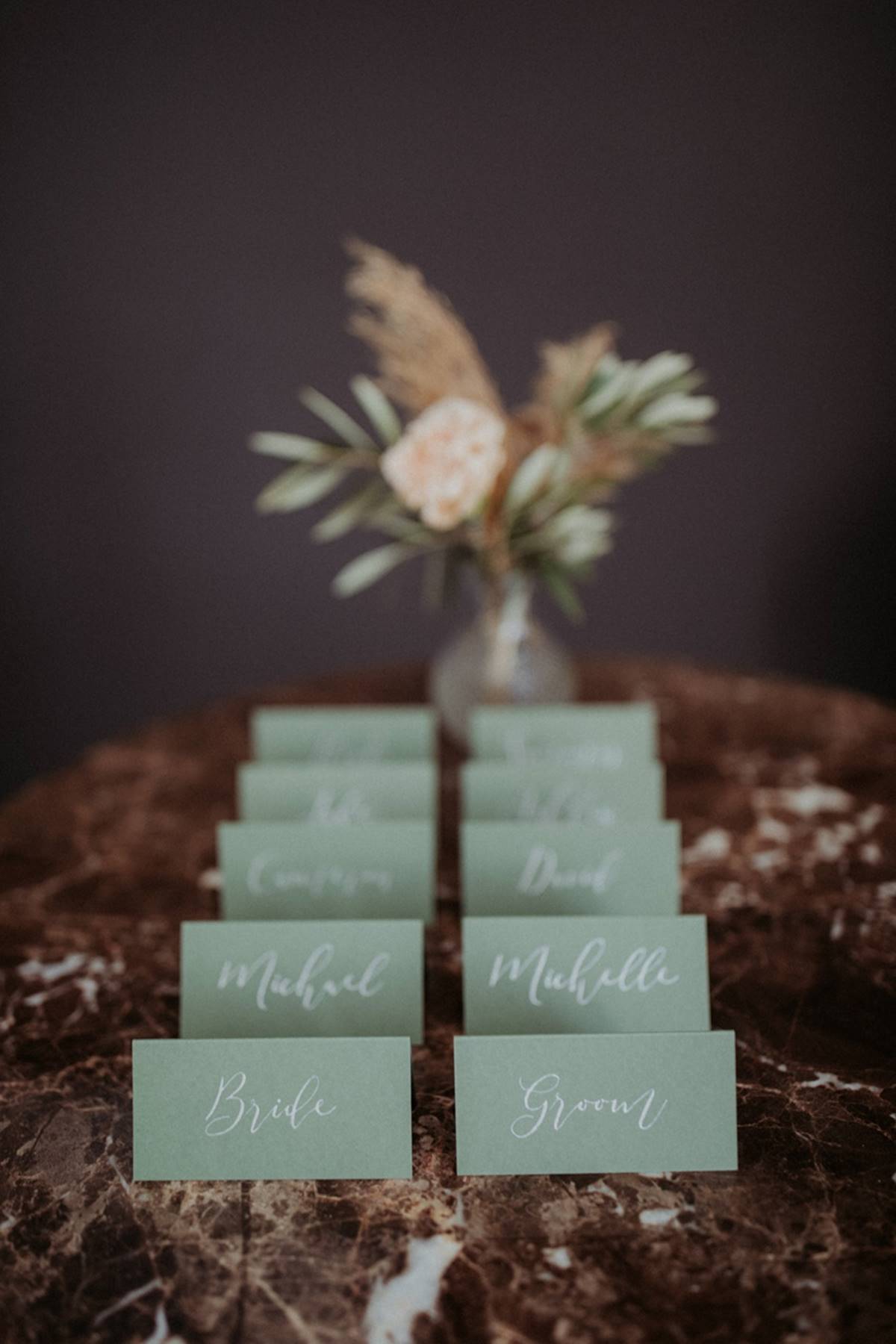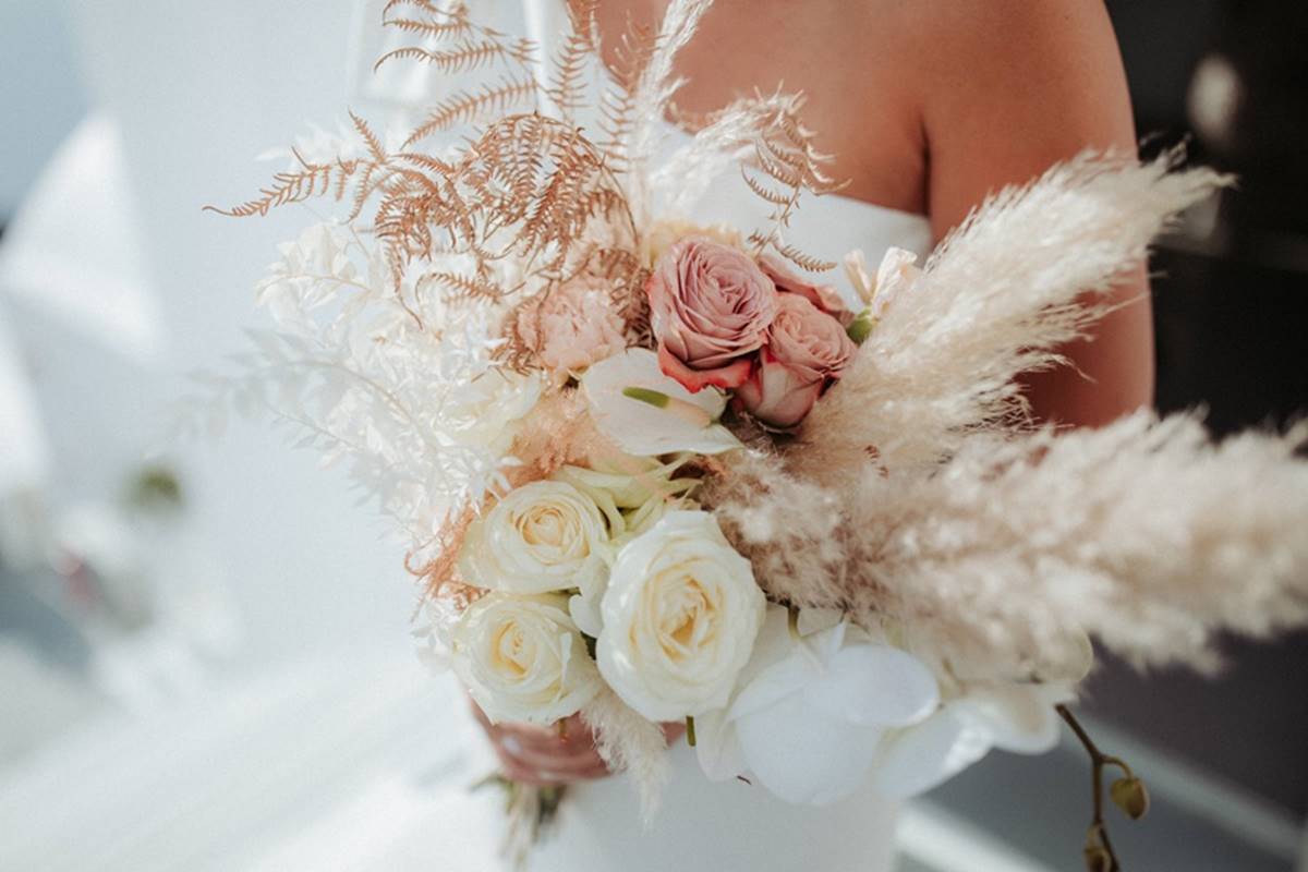 The décor reflected Ashley’s stunning sophisticated wedding dress and the couple’s sparkly personality. Our trusted associates Red Box Days helped us bring Ashley’s vision to life by using timeless olive branches combined with luscious white hydrangeas and roses and finished the arrangements with earthy pampas grass to give them special dimension. The setting could not have been complete without a bold touch of light and what better than a complete curtain of fairy lights that made guests and newlyweds think they were having the perfect dreamy dinner under a sky full of stars.