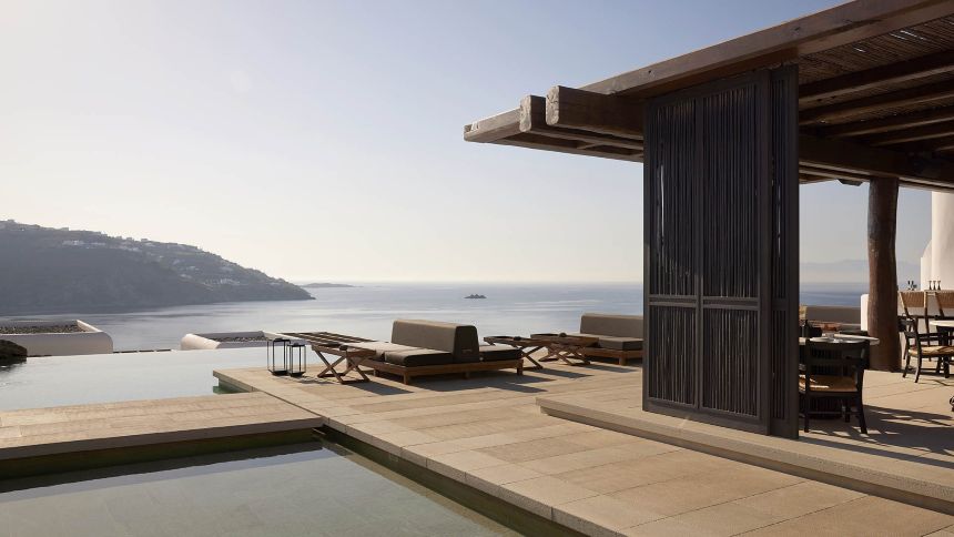 Katikies Mykonos delivers Cycladic elegance in a quieter, more cinematic part of the island. Perched above Agios Ioannis, it offers sweeping sea views with refined hospitality—ideal for couples who love Mykonos but want restraint.