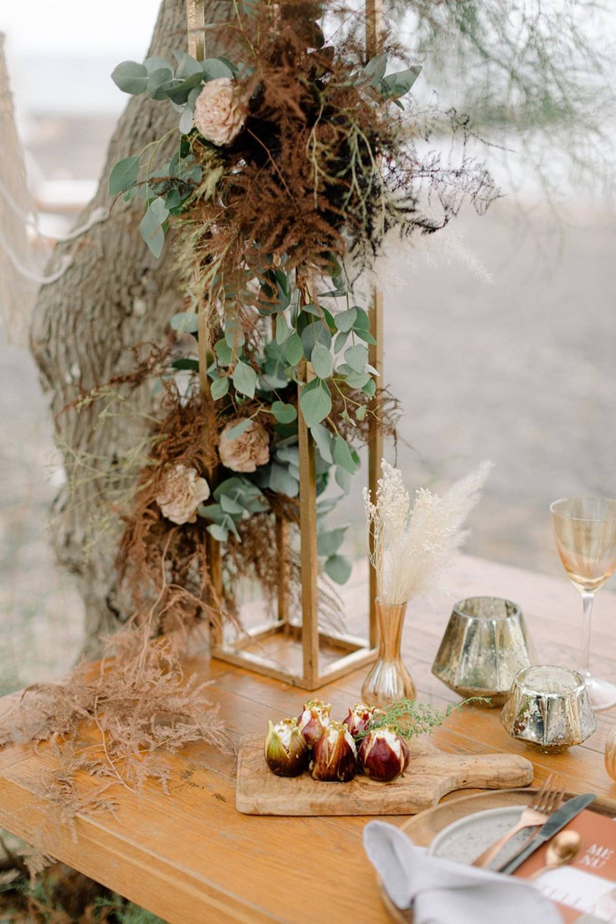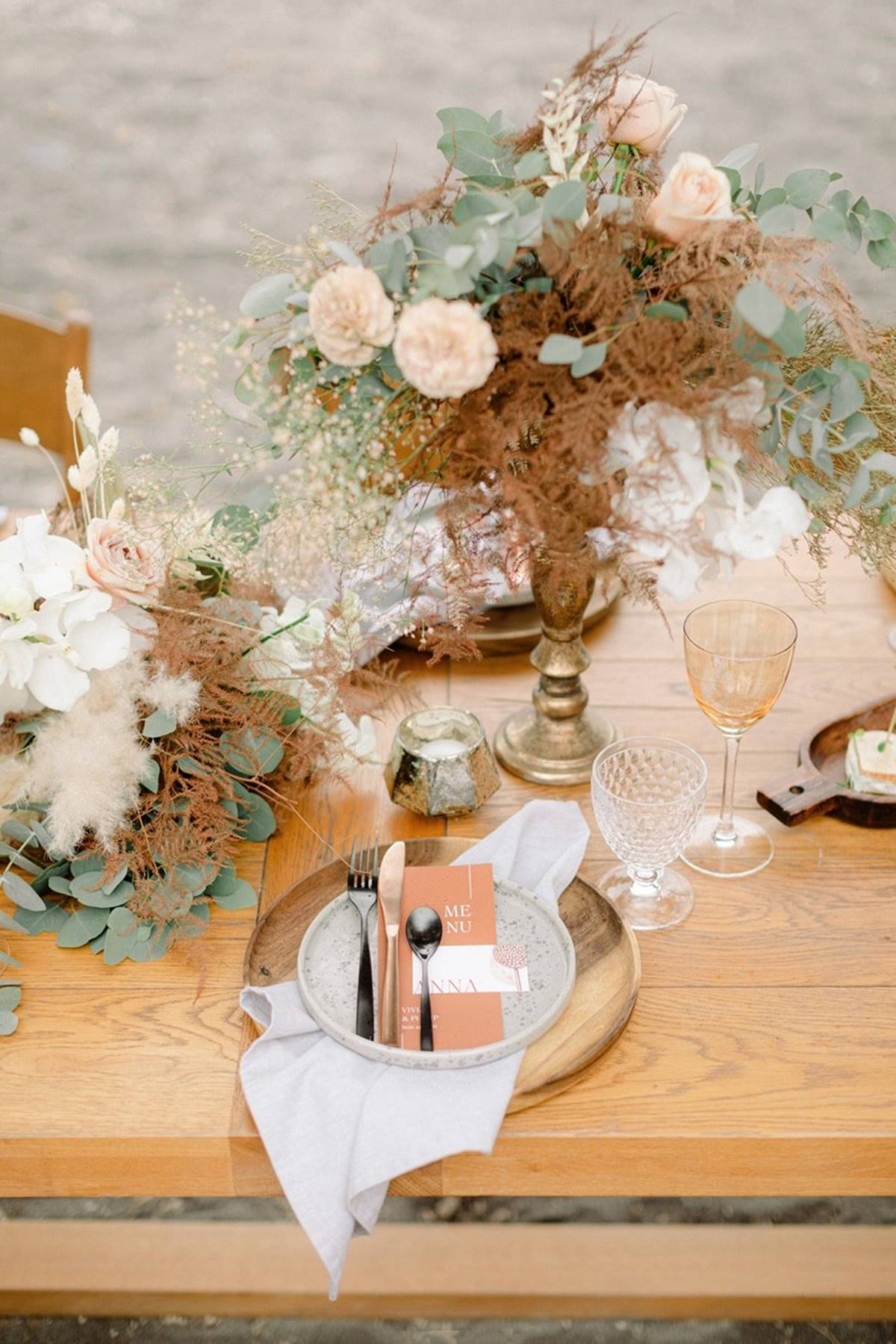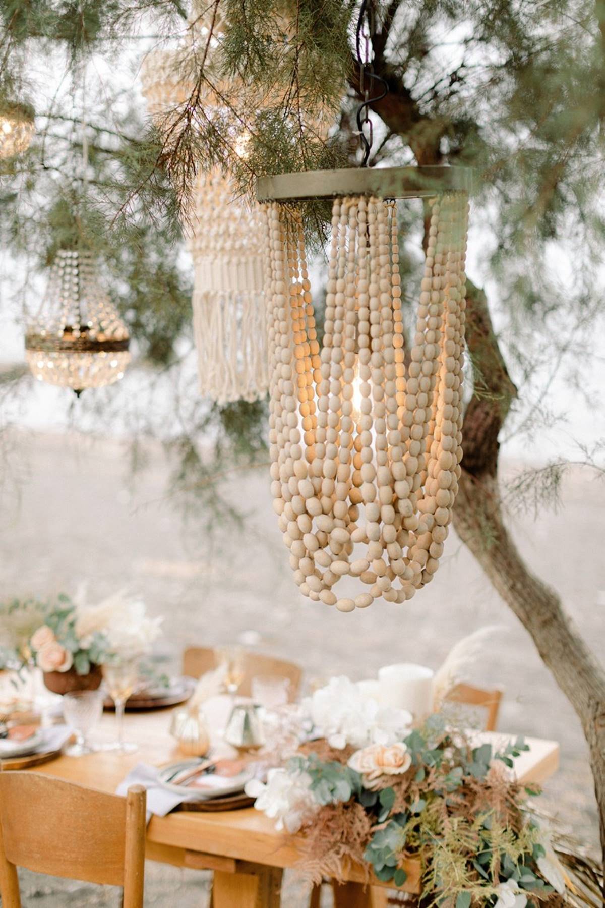 The idea was to merge bohemian vibes with a modern attitude. Introducing earthy textures like stone, wood and fun ideas like macrame chandeliers, and marrying them with the elegance of the perfectly set up table (the perks of a small celebration), complete with luxe glassware, lush flower arrangements and high quality stationary. With a smaller guest list the flexibility in choosing a location and investing your budget leaves couples with endless possibilities.