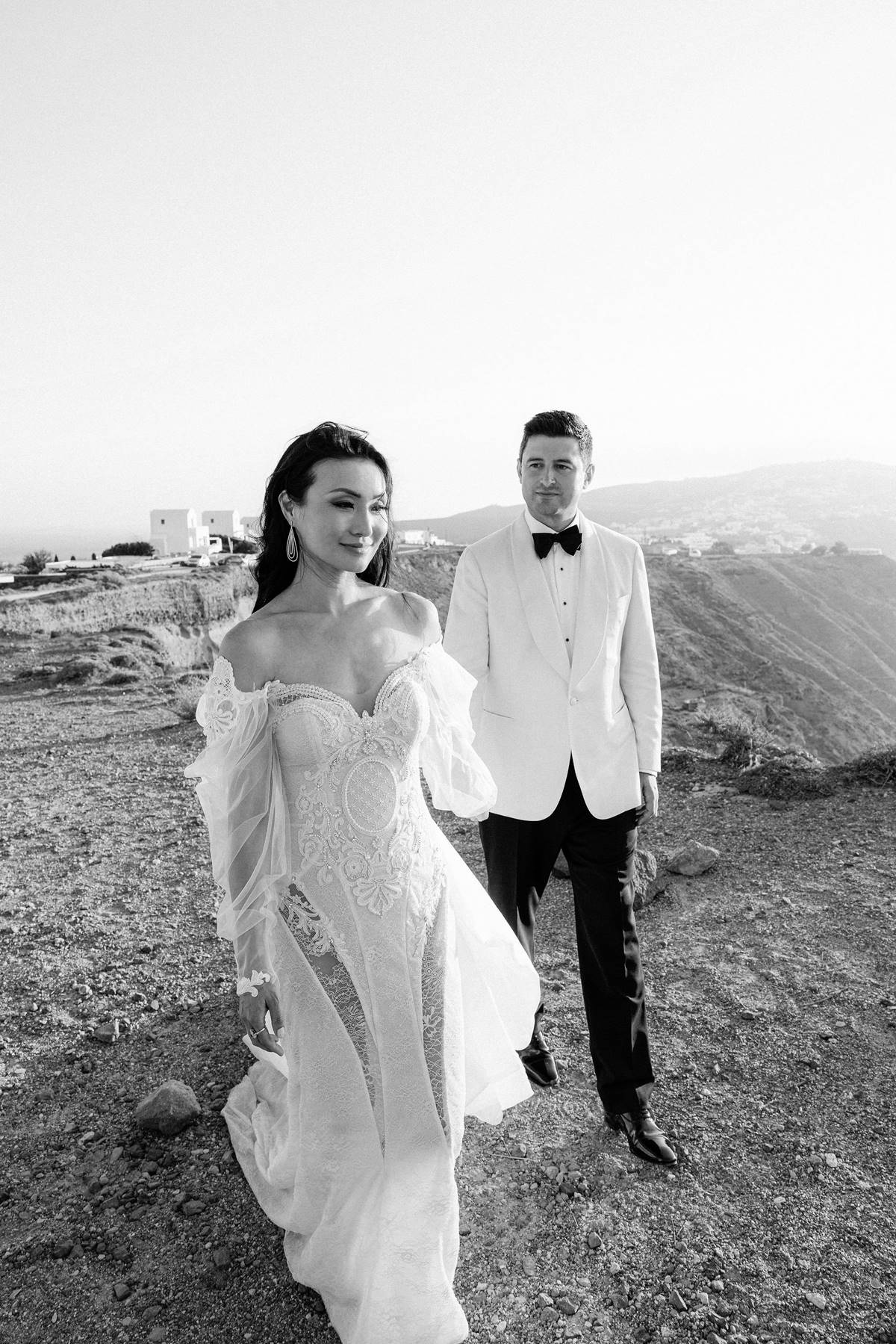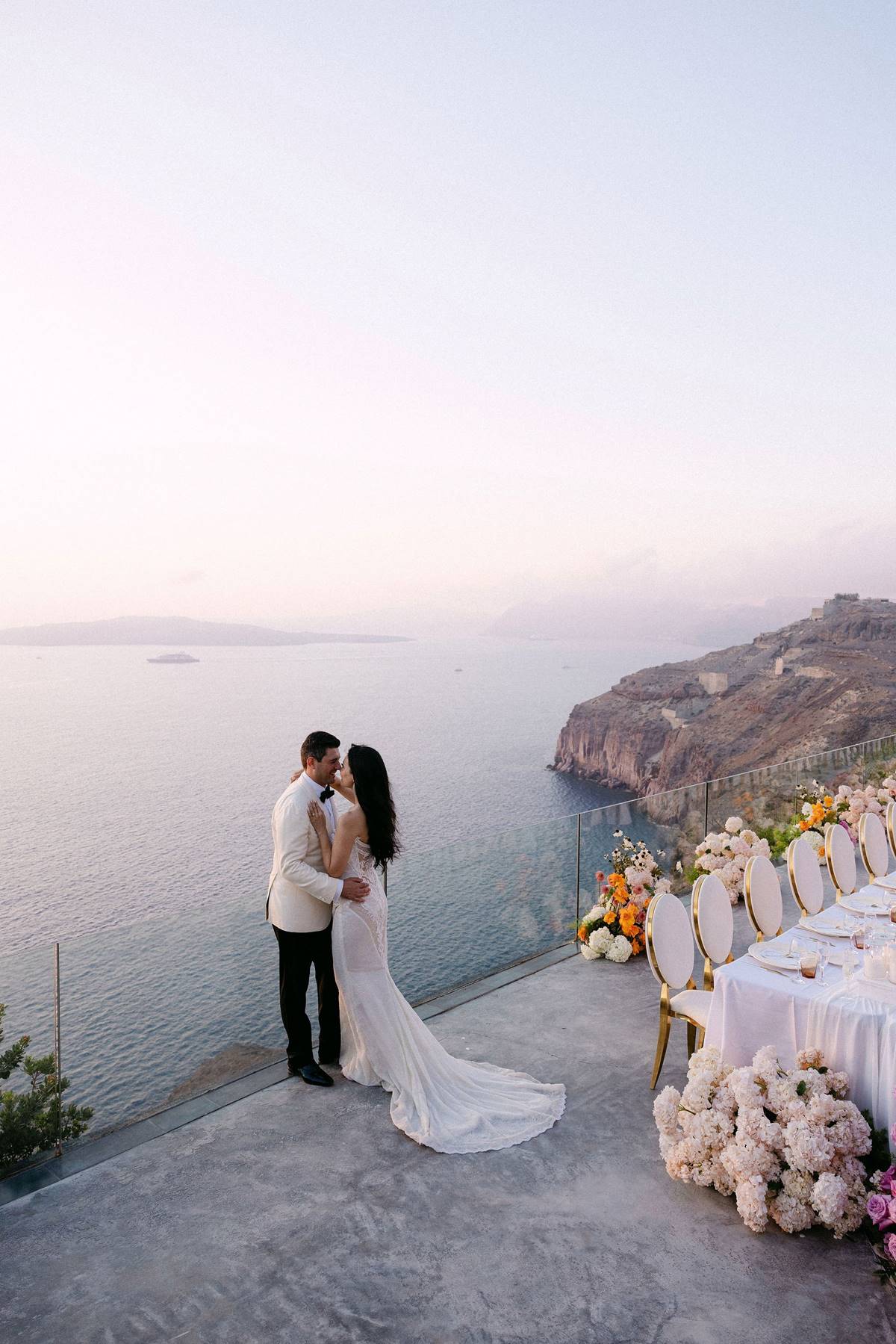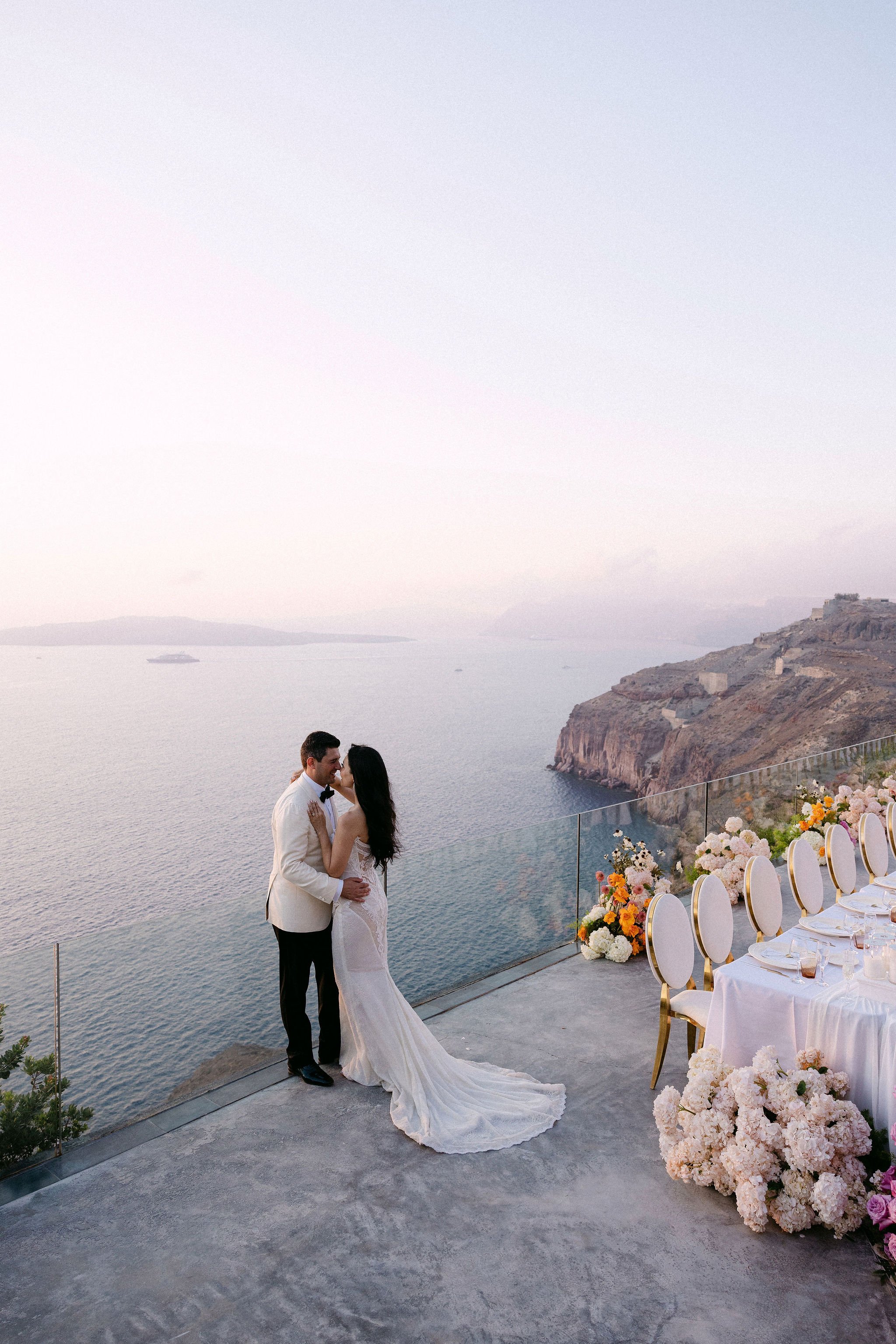 This stunning Destination Wedding in Santorini united two doctors from Australia — the bride of Chinese descent and the groom of Greek heritage — in a celebration that beautifully blended cultures, colour, and contemporary elegance.