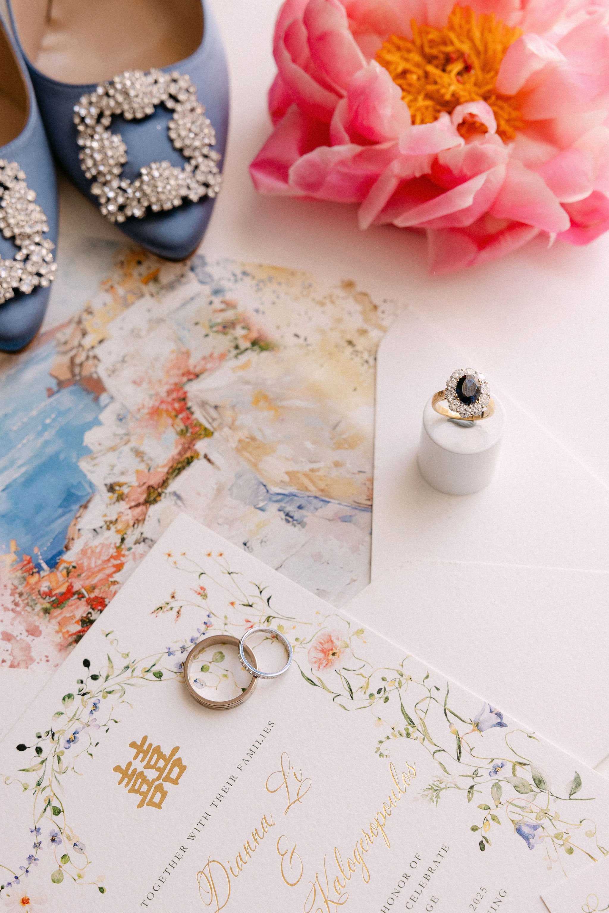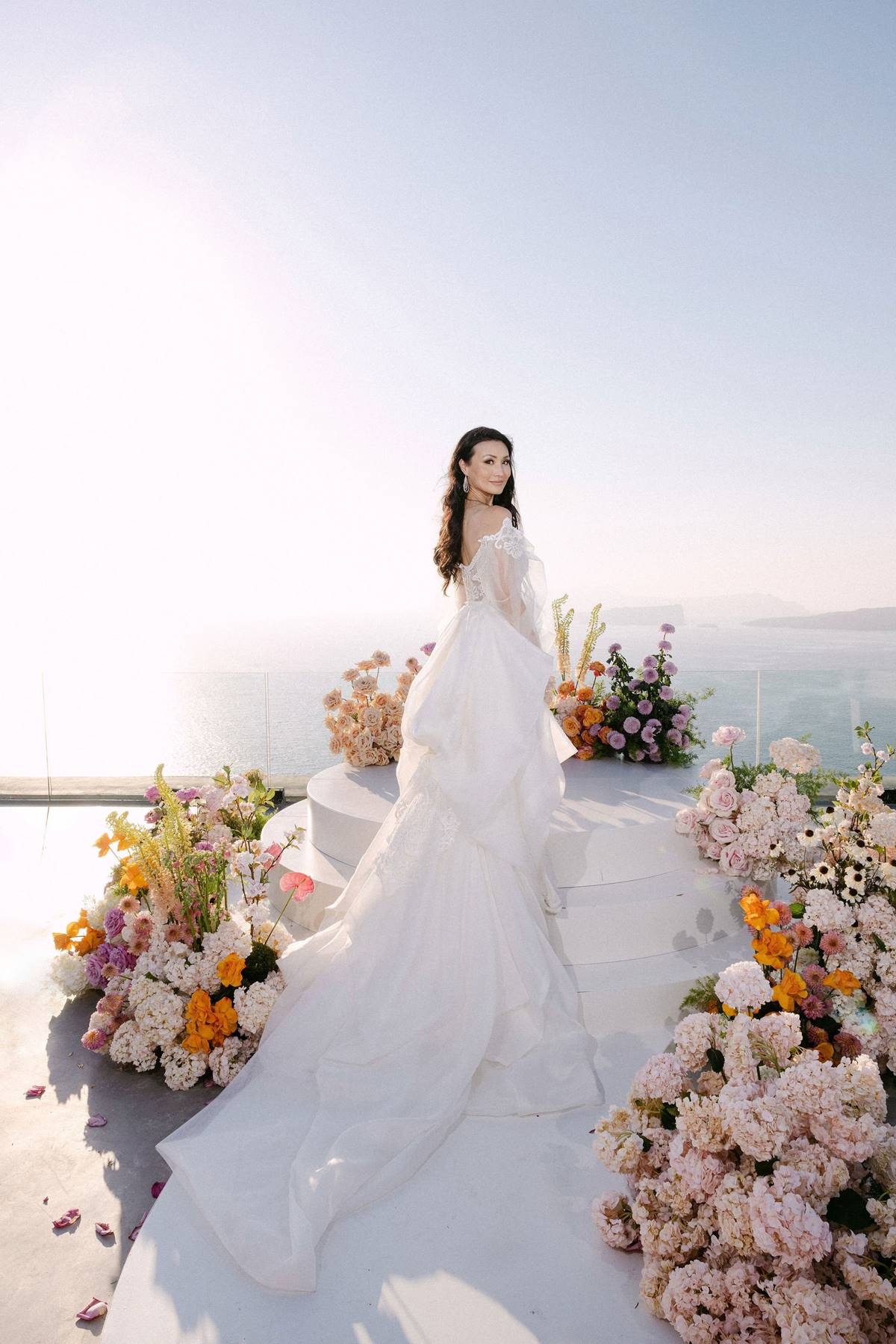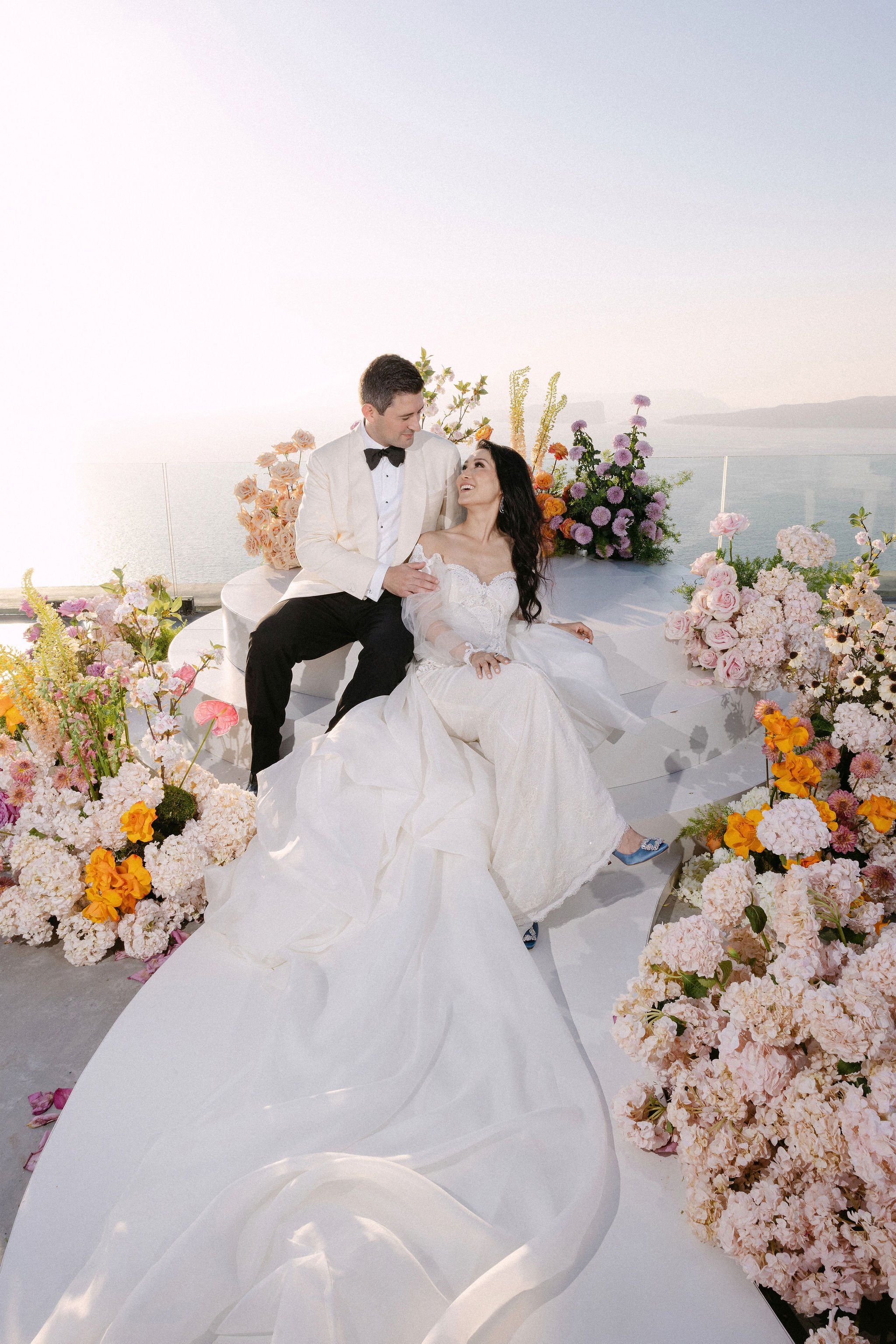 This stunning Destination Wedding in Santorini united two doctors from Australia — the bride of Chinese descent and the groom of Greek heritage — in a celebration that beautifully blended cultures, colour, and contemporary elegance.