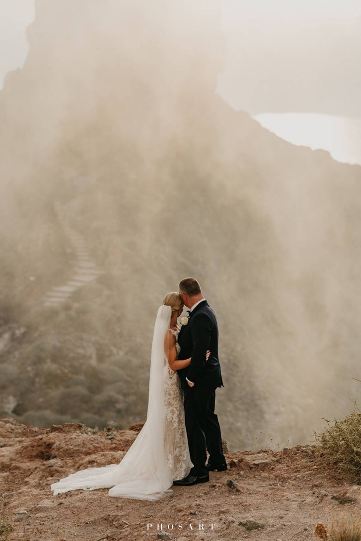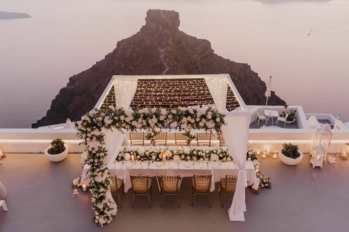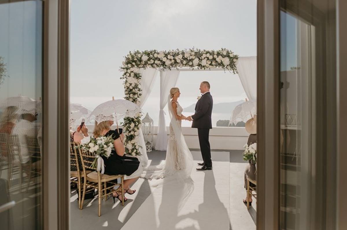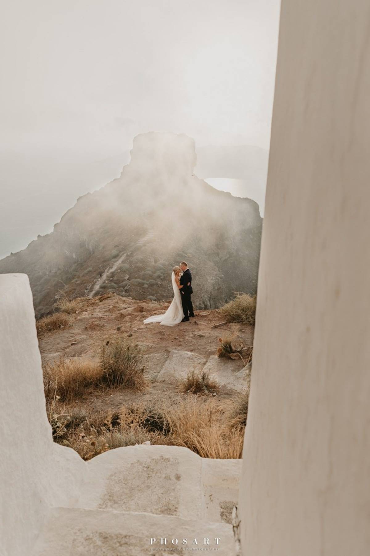 Santorini is definitely one of the most impressive places on earth. But being a volcanic island comes with a few surprises and as event planners we do admit that the weather surprises are the only ones we cannot control. On Sarah and Justin’s wedding day the most imposing yet atmospheric mist creeped up the caldera and created a breathtaking scenery just before the ceremony.
