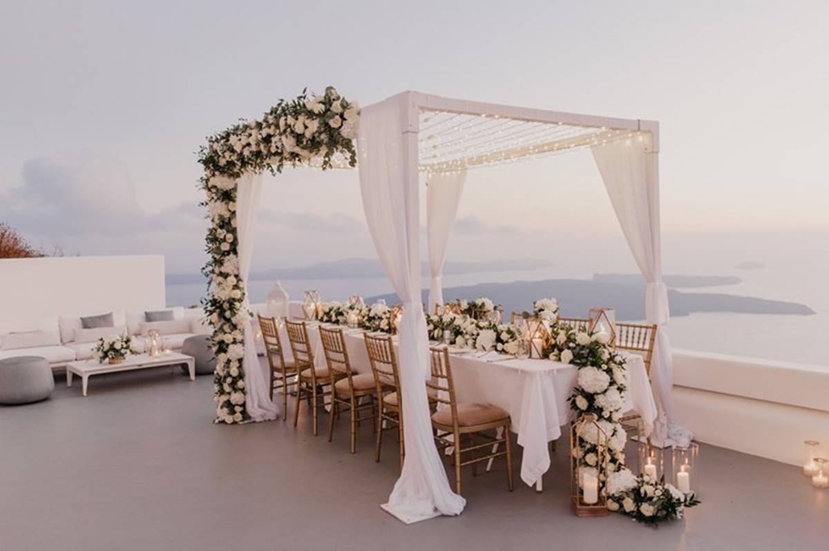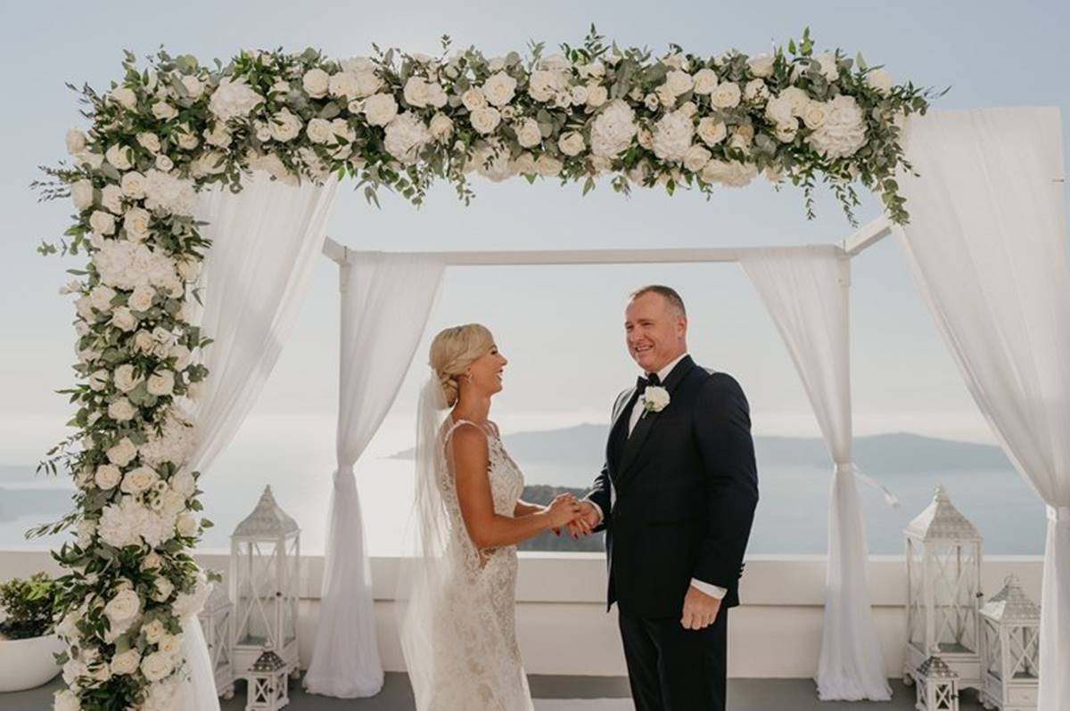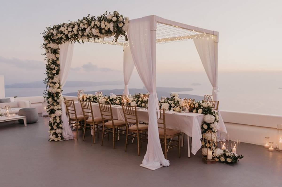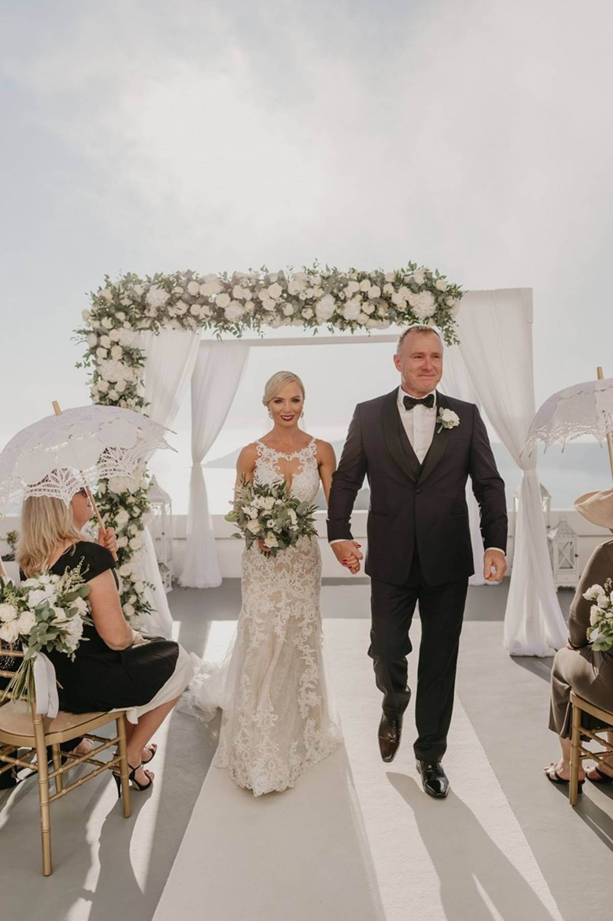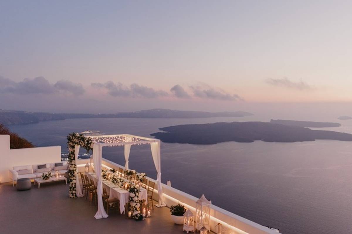 Santorini is definitely one of the most impressive places on earth. But being a volcanic island comes with a few surprises and as event planners we do admit that the weather surprises are the only ones we cannot control. On Sarah and Justin’s wedding day the most imposing yet atmospheric mist creeped up the caldera and created a breathtaking scenery just before the ceremony.