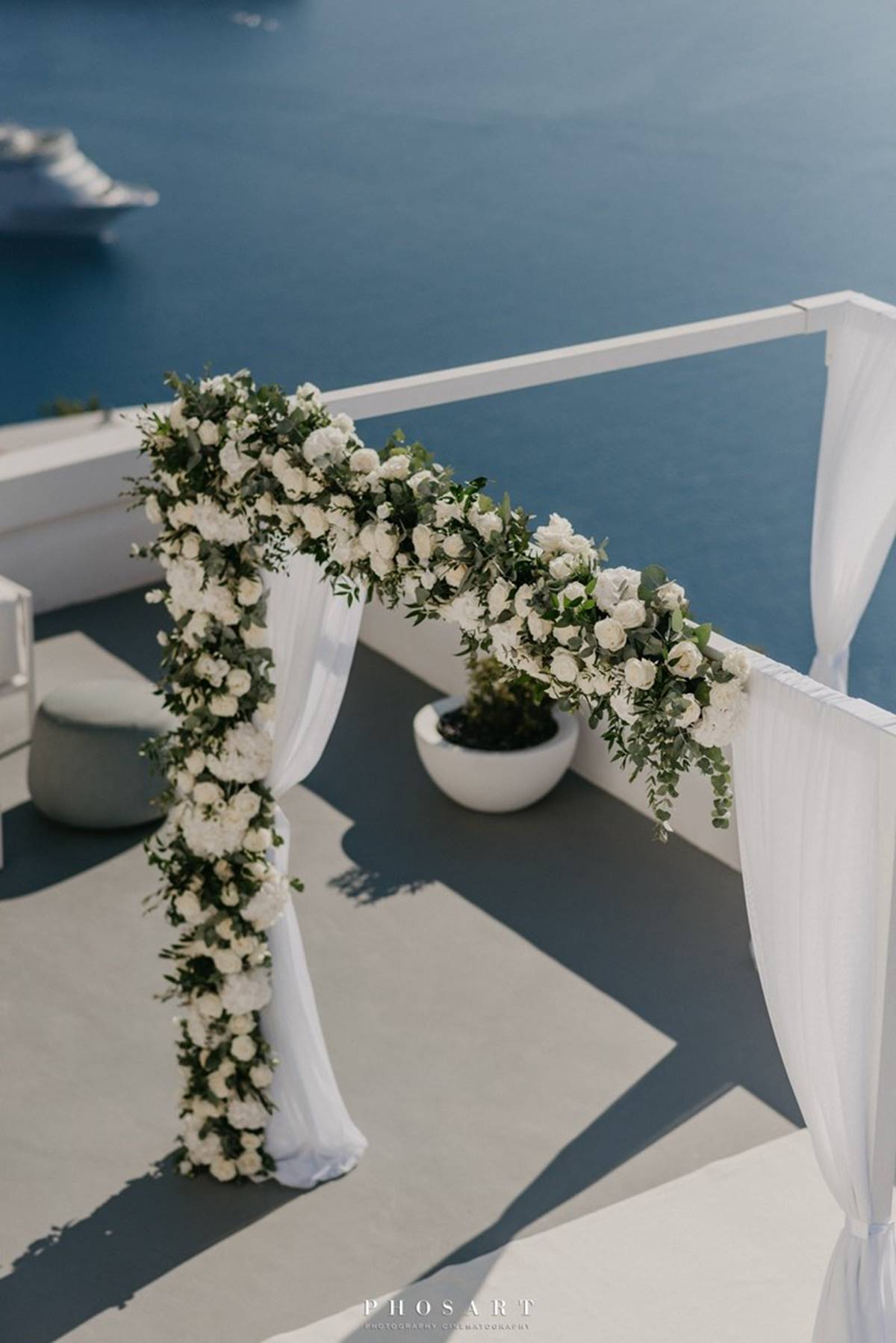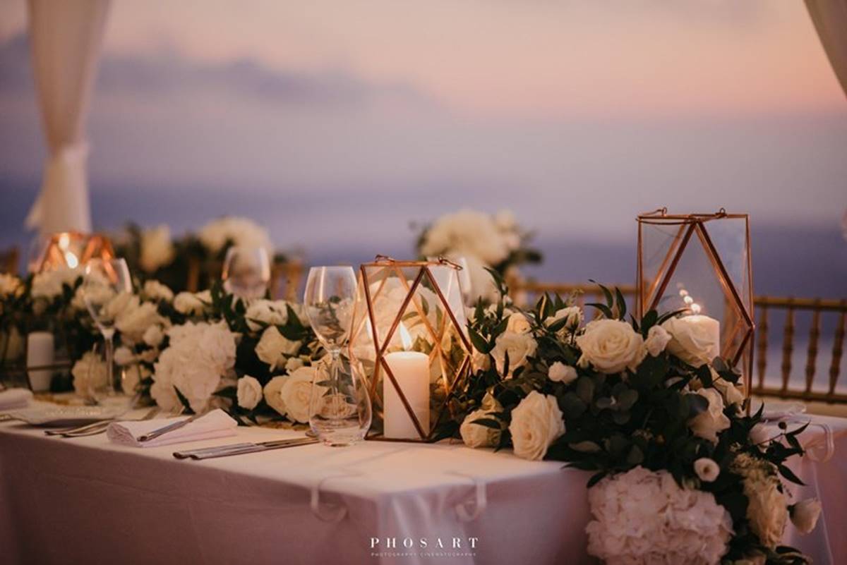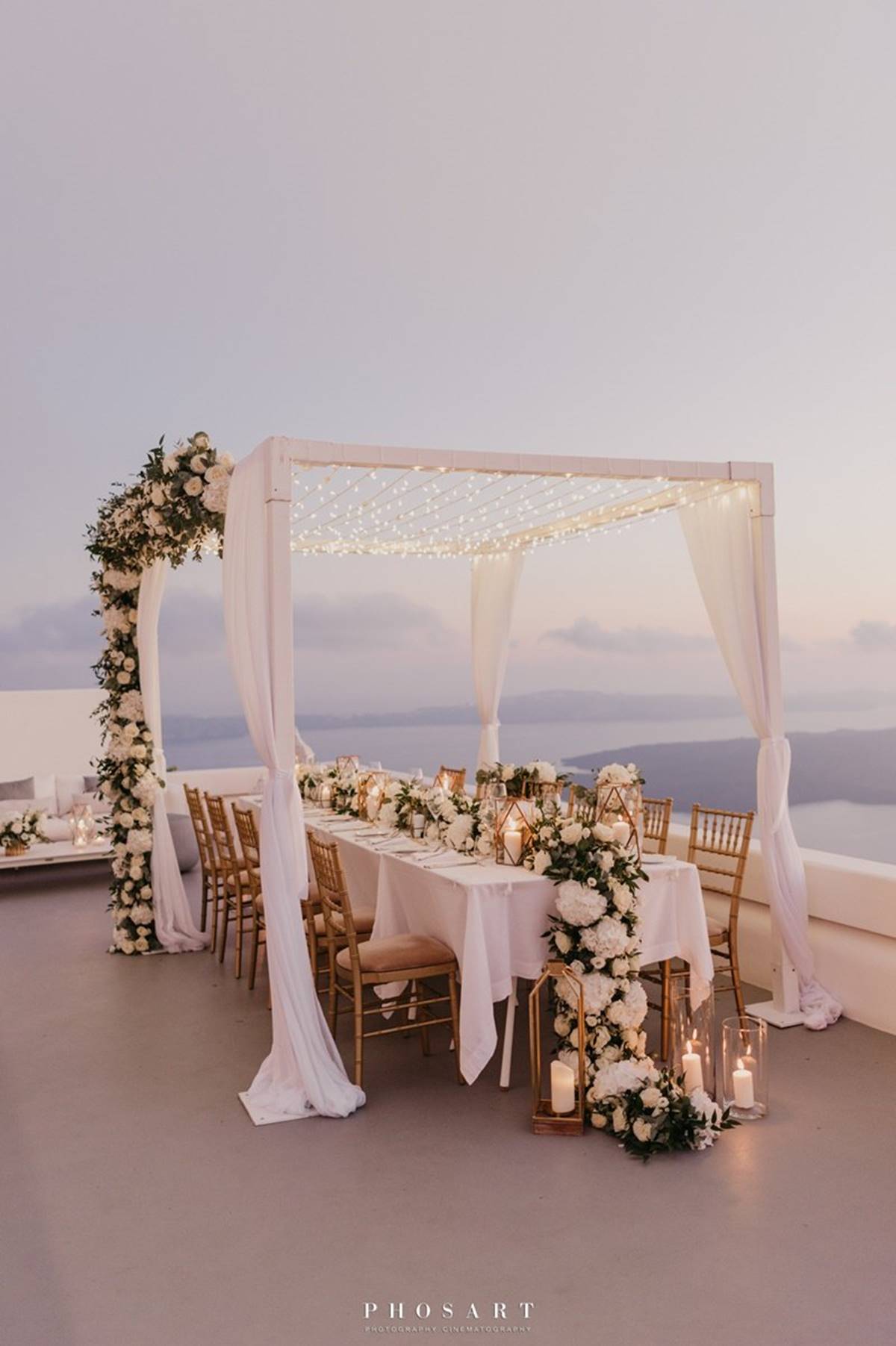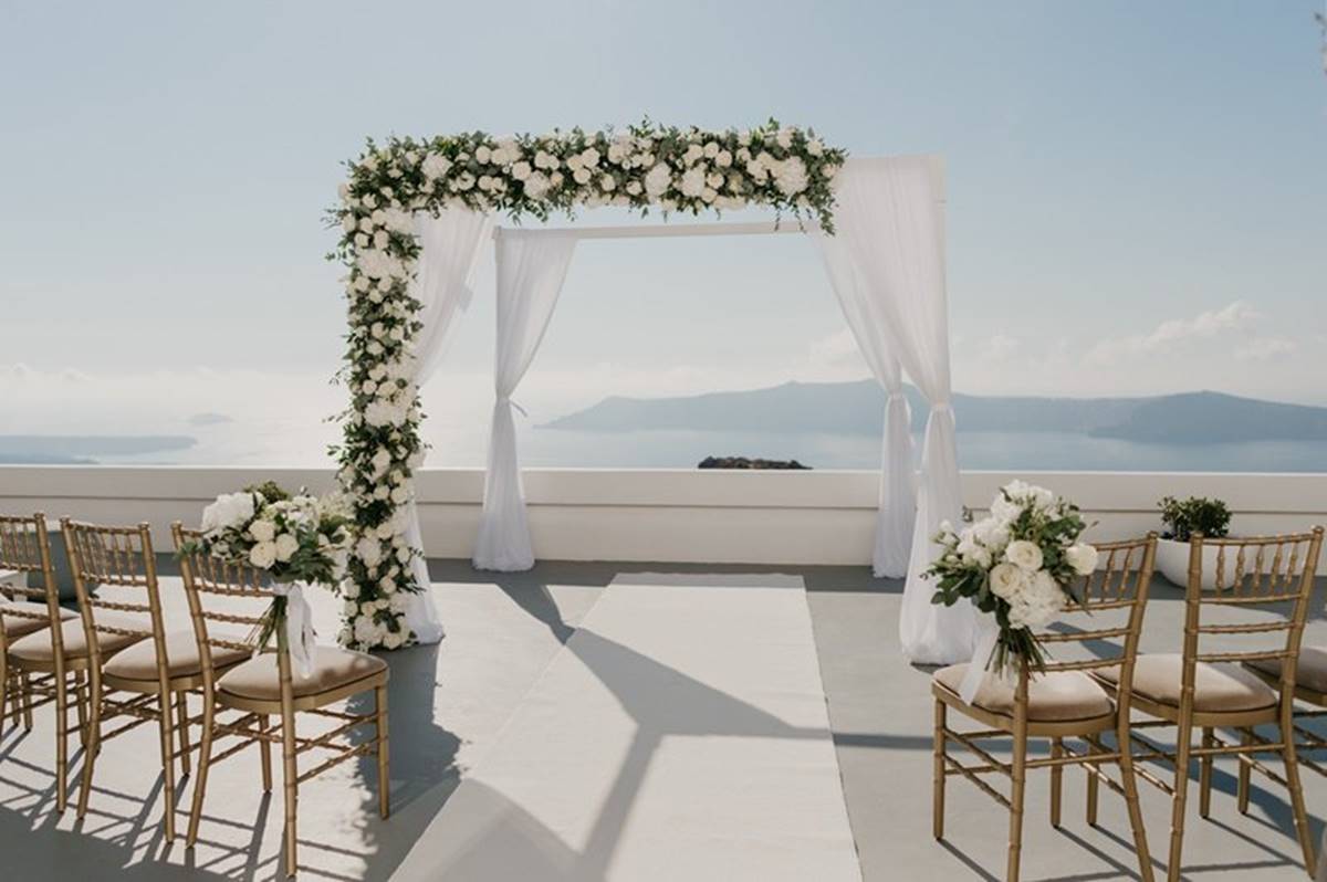 Santorini is definitely one of the most impressive places on earth. But being a volcanic island comes with a few surprises and as event planners we do admit that the weather surprises are the only ones we cannot control. On Sarah and Justin’s wedding day the most imposing yet atmospheric mist creeped up the caldera and created a breathtaking scenery just before the ceremony.