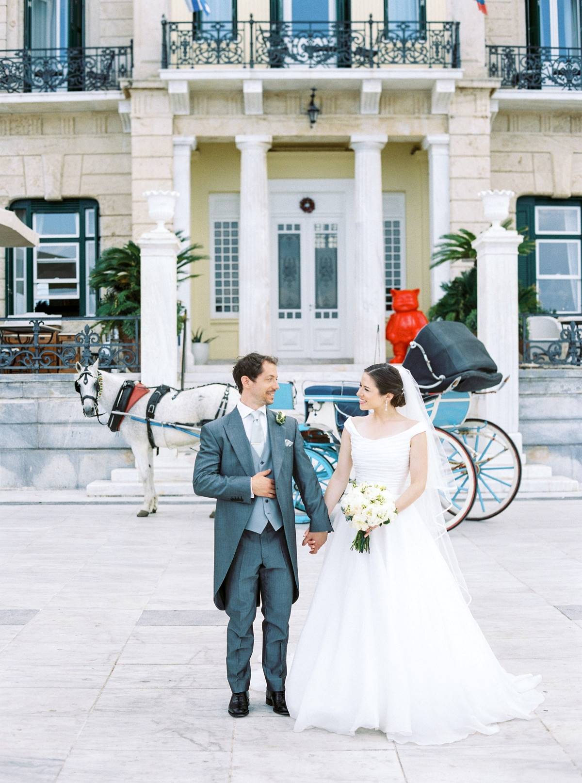 Sian is the epitopy of class and timeless beauty – a true English rose that chose to marry the man of her life in the officially “royal” Greek island of Spetses. Even though they met and live in England, Sian and George decided to honour George’s Greek routes and officially join their families and their lives in this elegant and sophisticated wedding celebration in Spetses. An island featured in the frontlines of contemporary Greek history and more recently the exclusive retreat for the Greek aristocracy, it makes you feel like the mansions, the small streets and the carriages jumped straight out of a ravure.