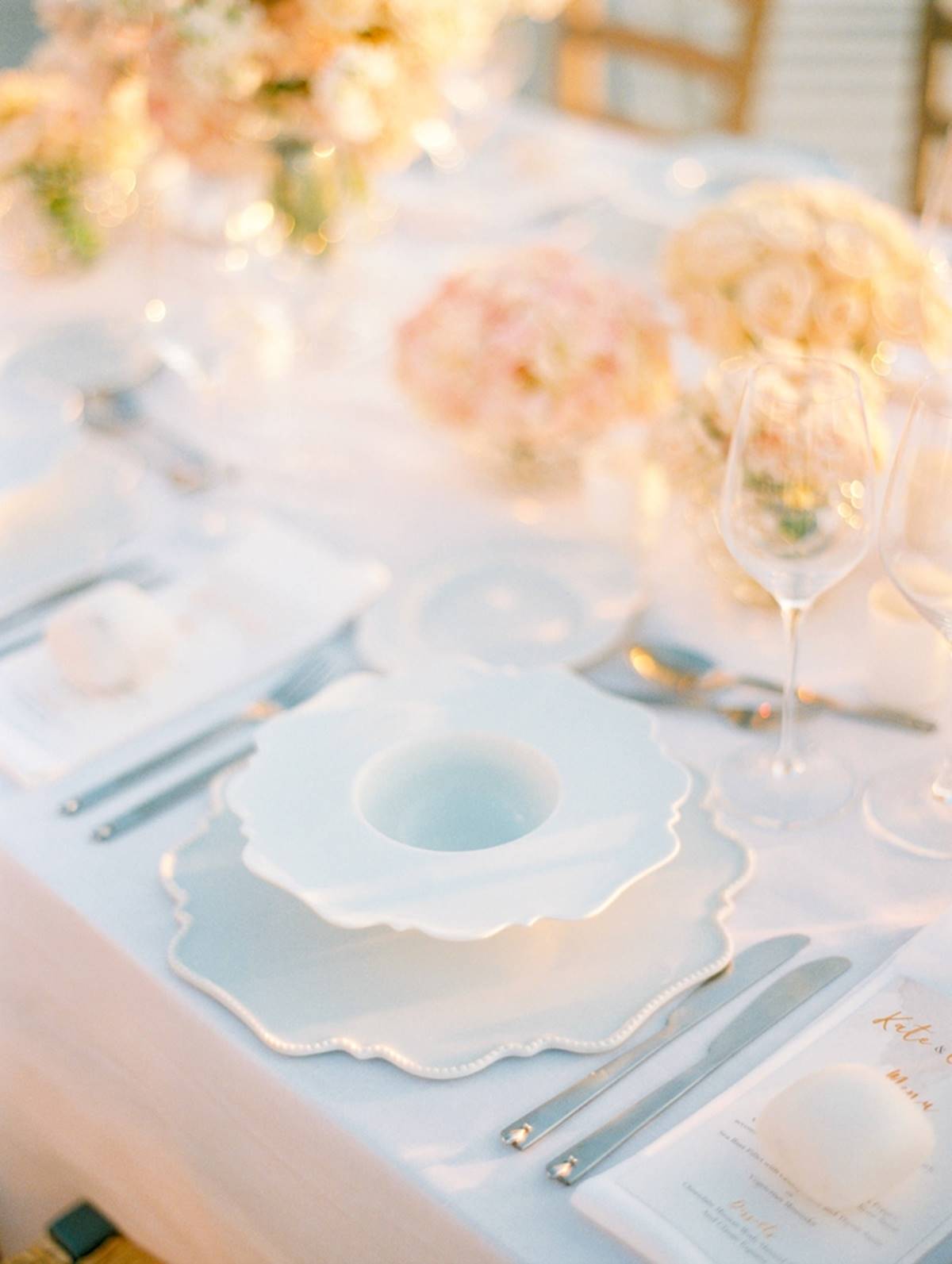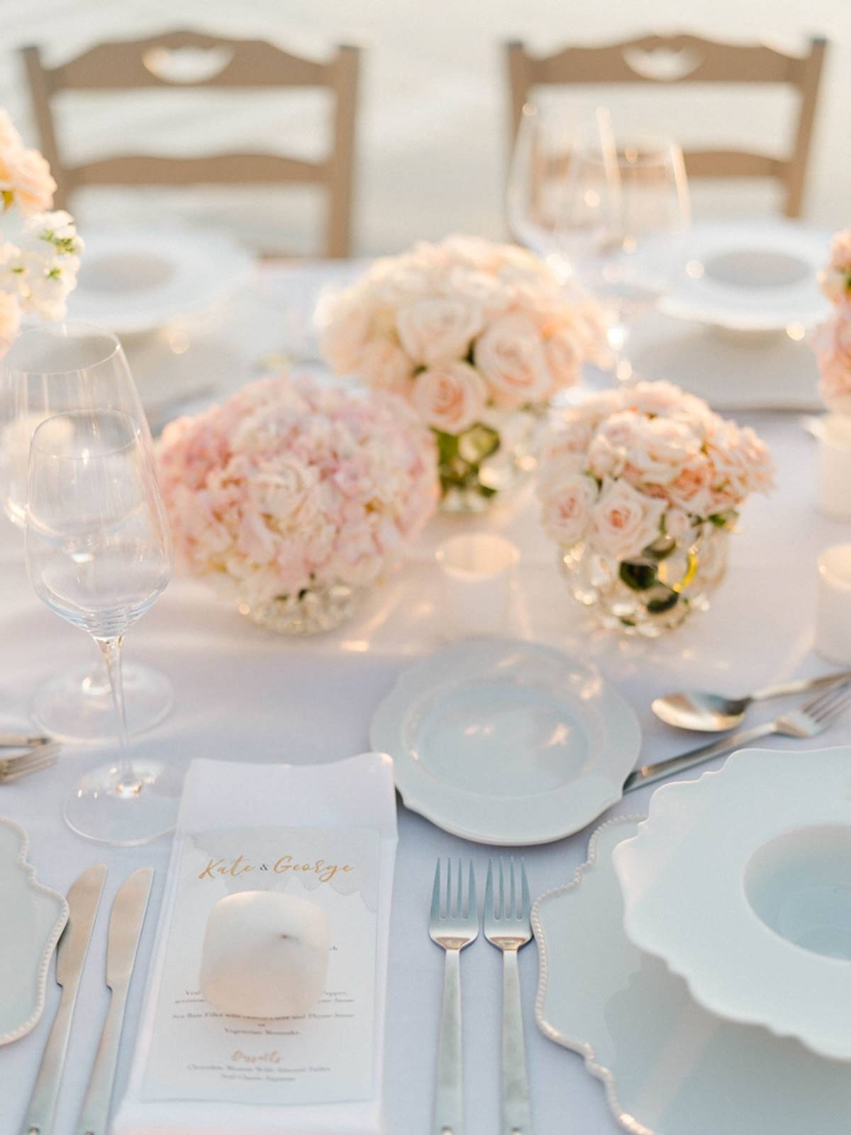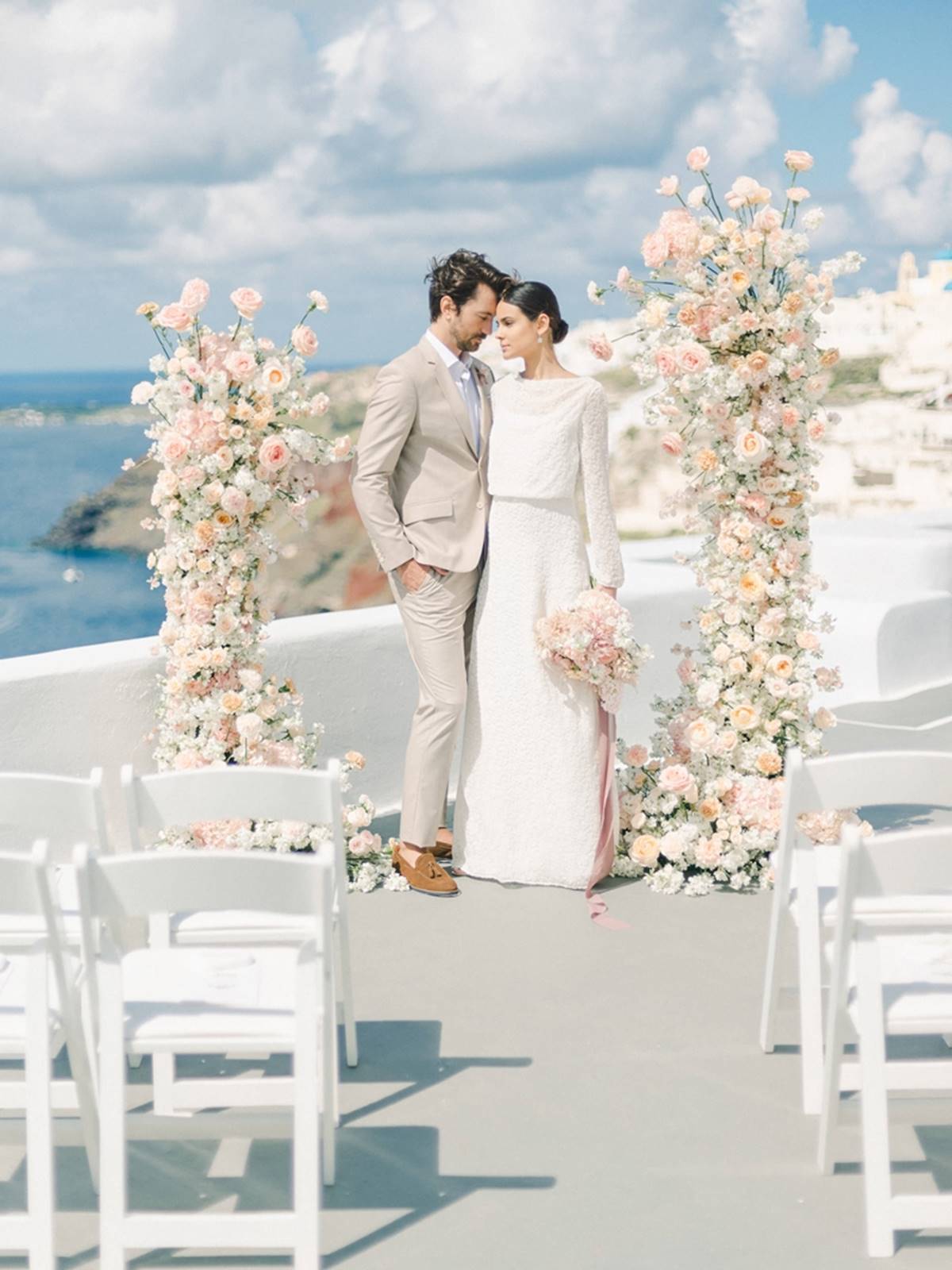 Romantic pinks and ivories combined with light grays, golds, precious stones and lace complete the perfect summer picture for a chic and sophisticated wedding in the world capital of magical sunsets.