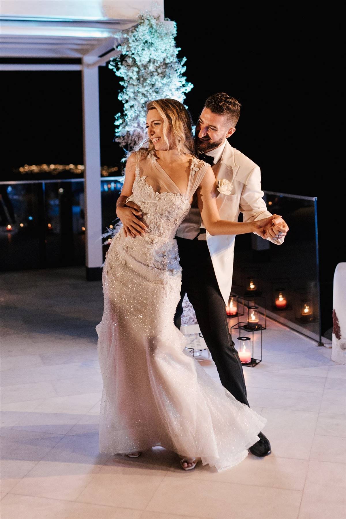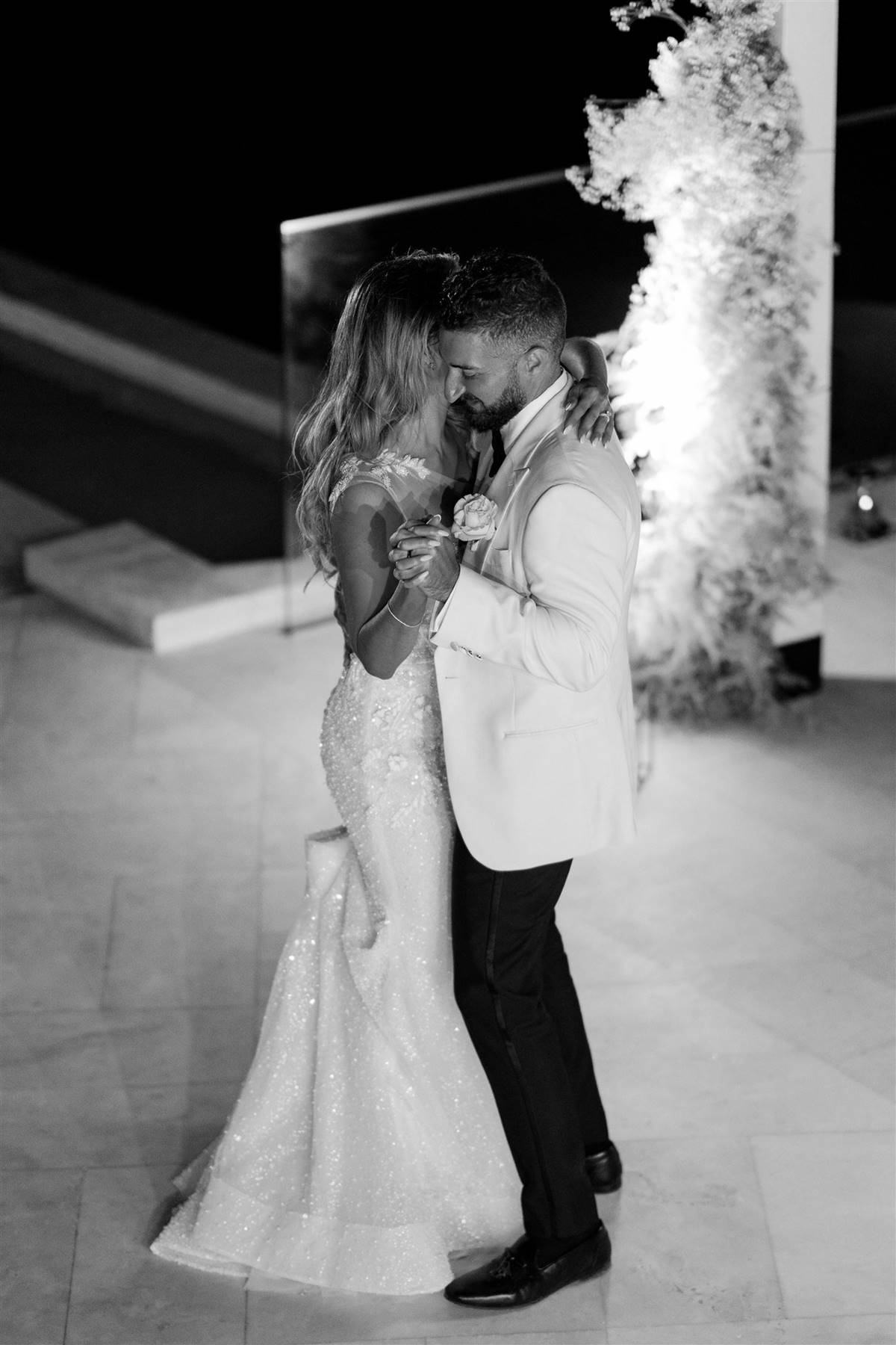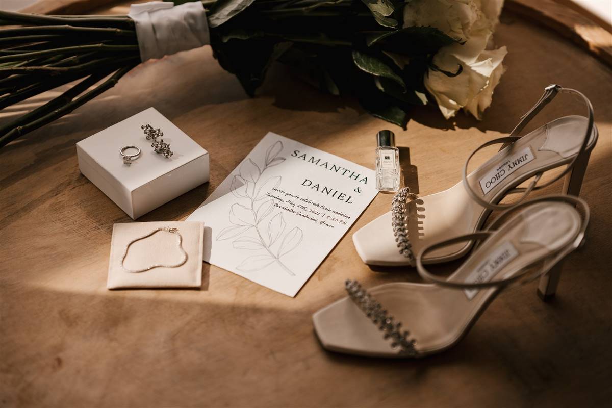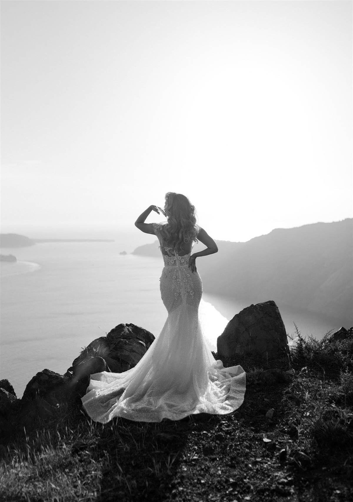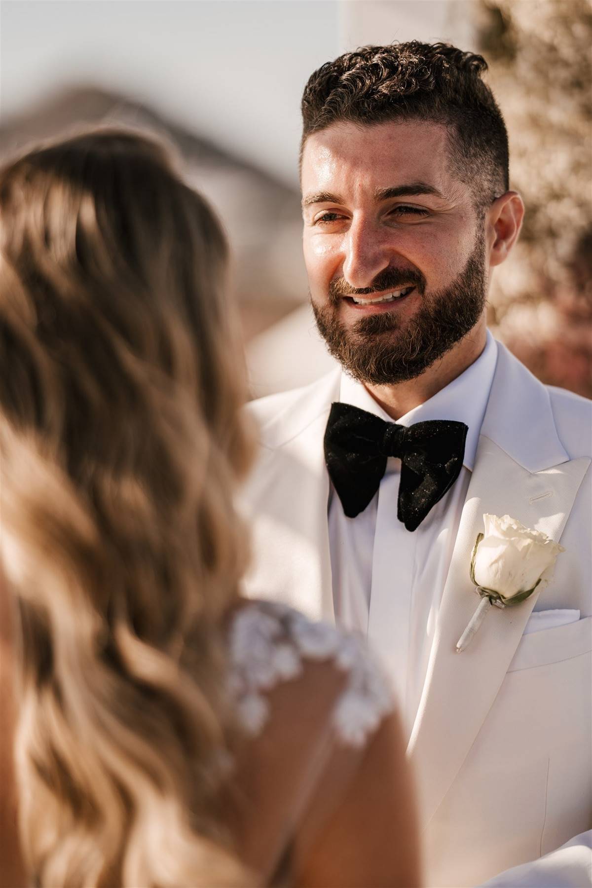 There is nothing but pure magic about Samantha and Daniel’s wedding! They chose the island of Santorini to say their I-dos, in a private and most romantic setting. And you can’t really go more romantic than a ceremony and dinner overlooking the sun setting in the Aegean. Endless cliff views, a classic color palette with a lively pop of black, and timeless details – talk about a truly modern and romantic wedding in the Greek Islands.