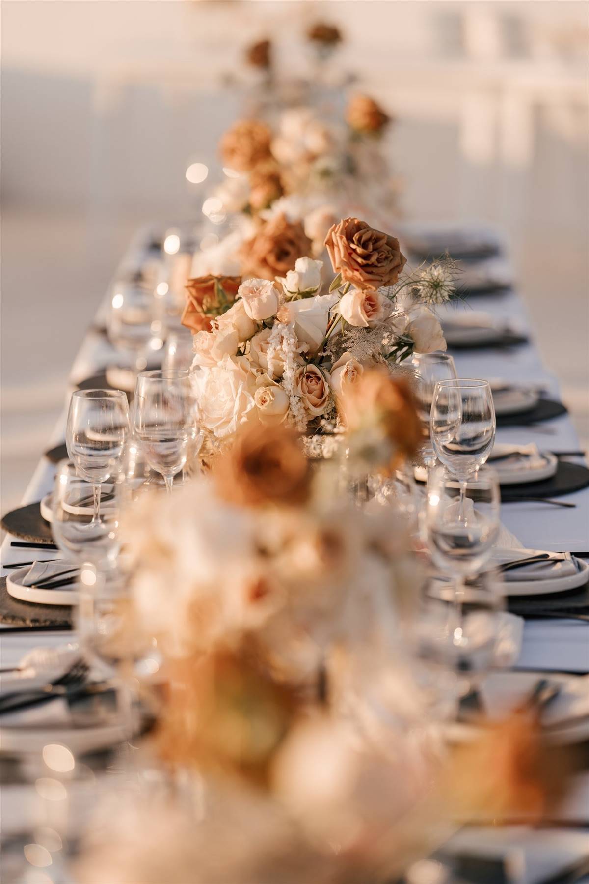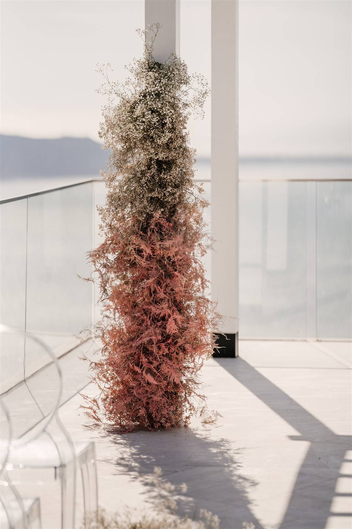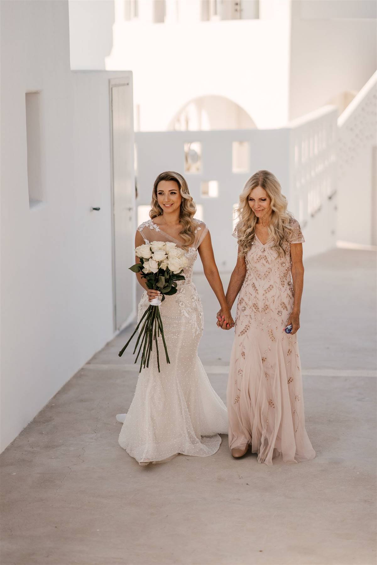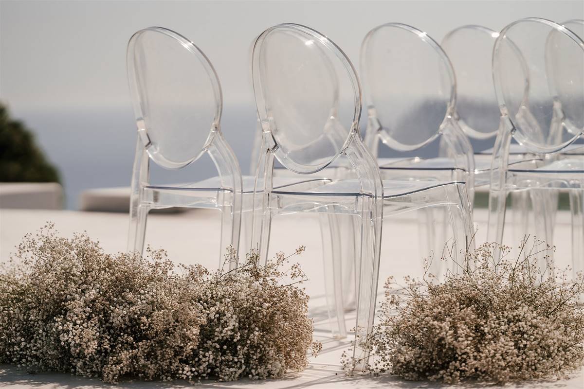 There is nothing but pure magic about Samantha and Daniel’s wedding! They chose the island of Santorini to say their I-dos, in a private and most romantic setting. And you can’t really go more romantic than a ceremony and dinner overlooking the sun setting in the Aegean. Endless cliff views, a classic color palette with a lively pop of black, and timeless details – talk about a truly modern and romantic wedding in the Greek Islands.