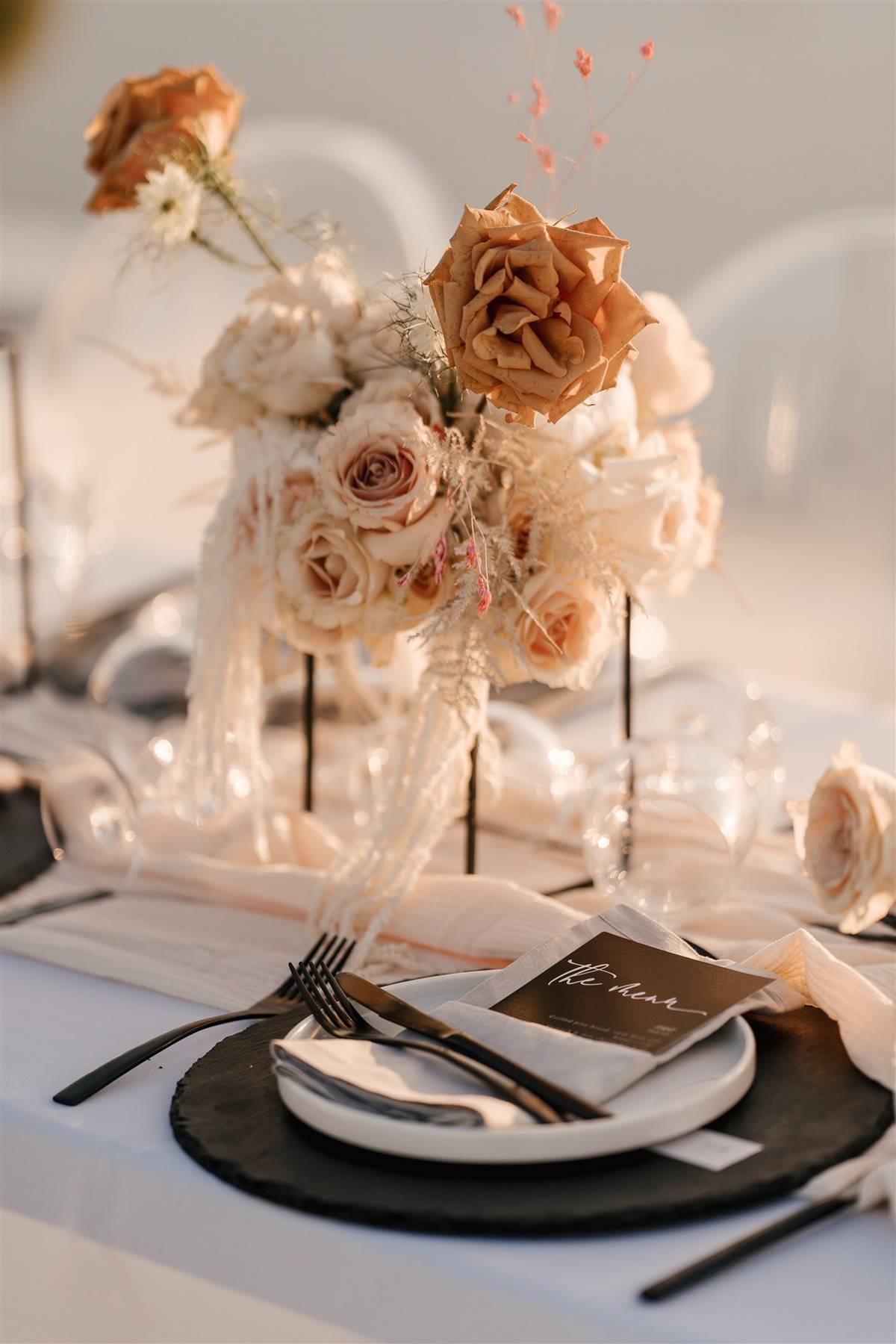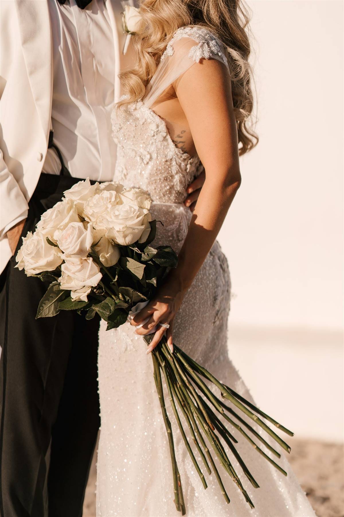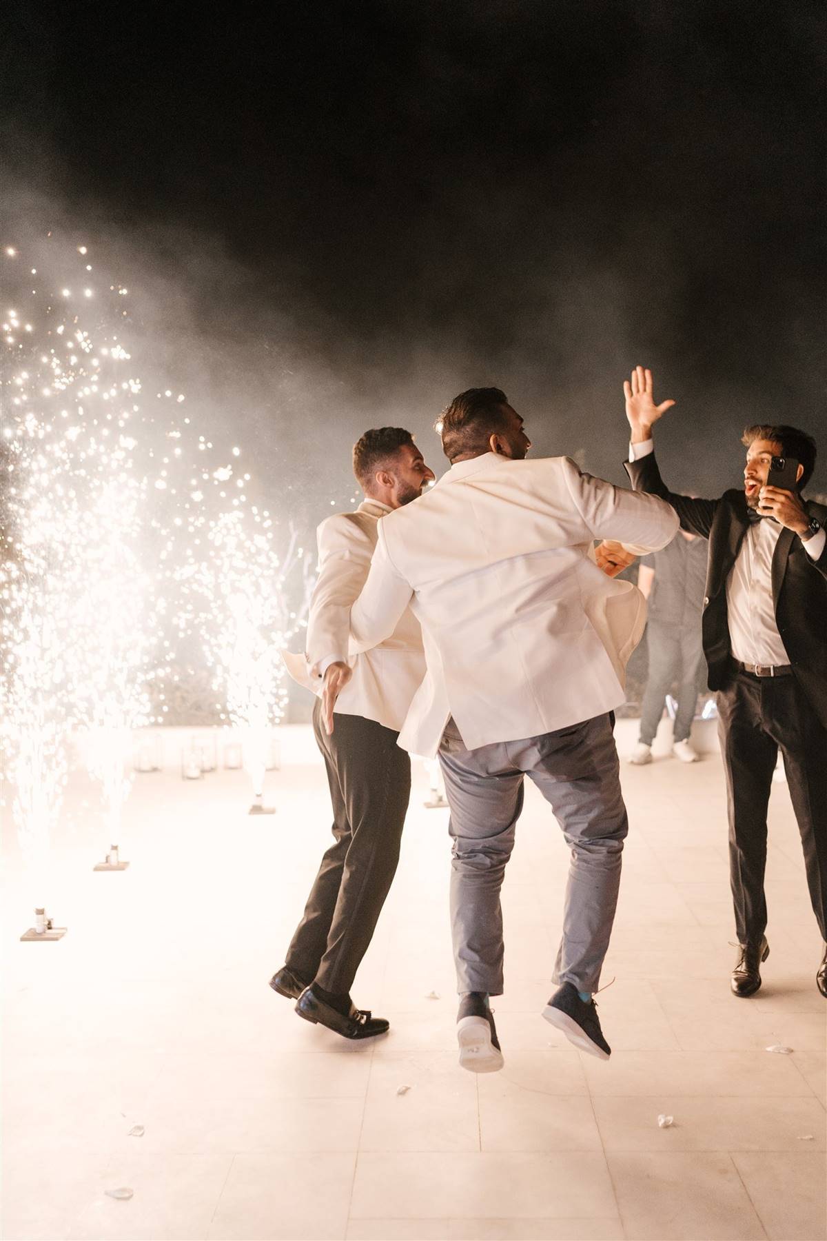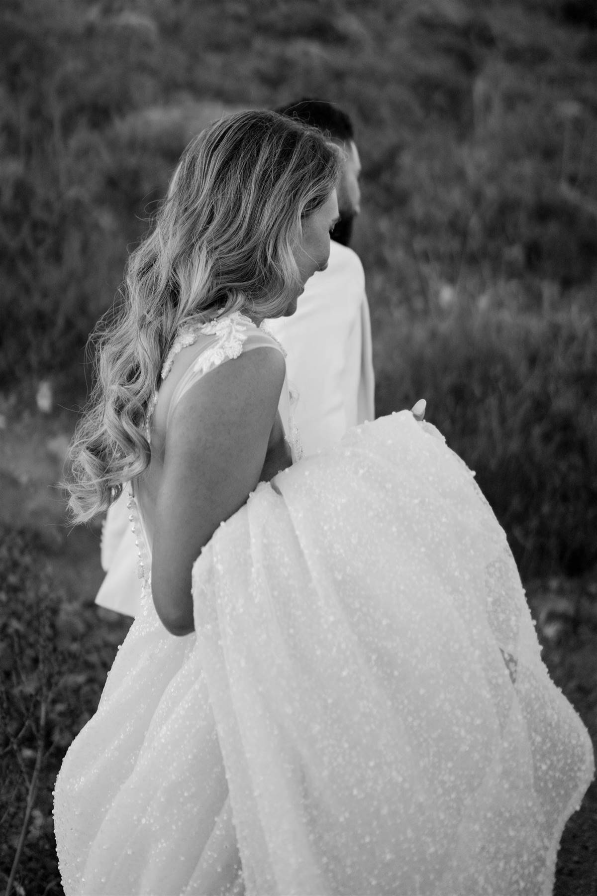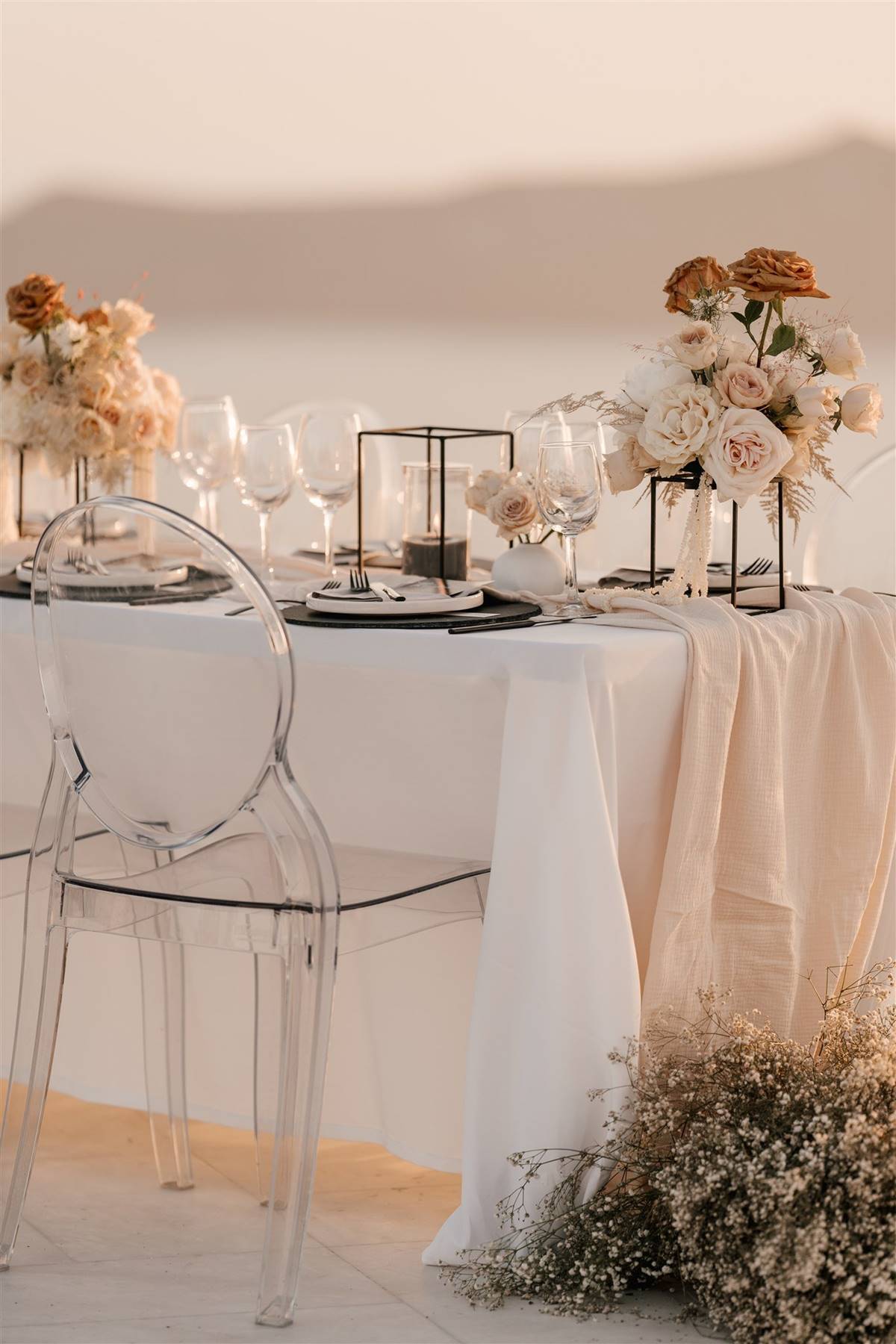 There is nothing but pure magic about Samantha and Daniel’s wedding! They chose the island of Santorini to say their I-dos, in a private and most romantic setting. And you can’t really go more romantic than a ceremony and dinner overlooking the sun setting in the Aegean. Endless cliff views, a classic color palette with a lively pop of black, and timeless details – talk about a truly modern and romantic wedding in the Greek Islands.