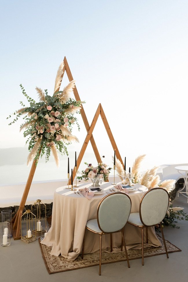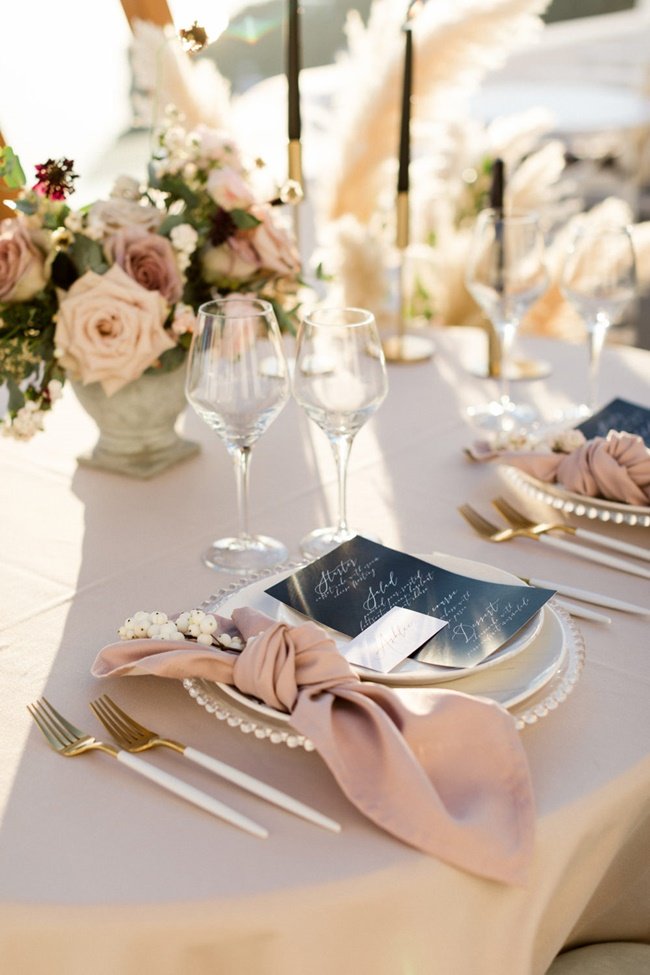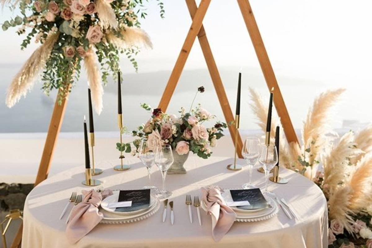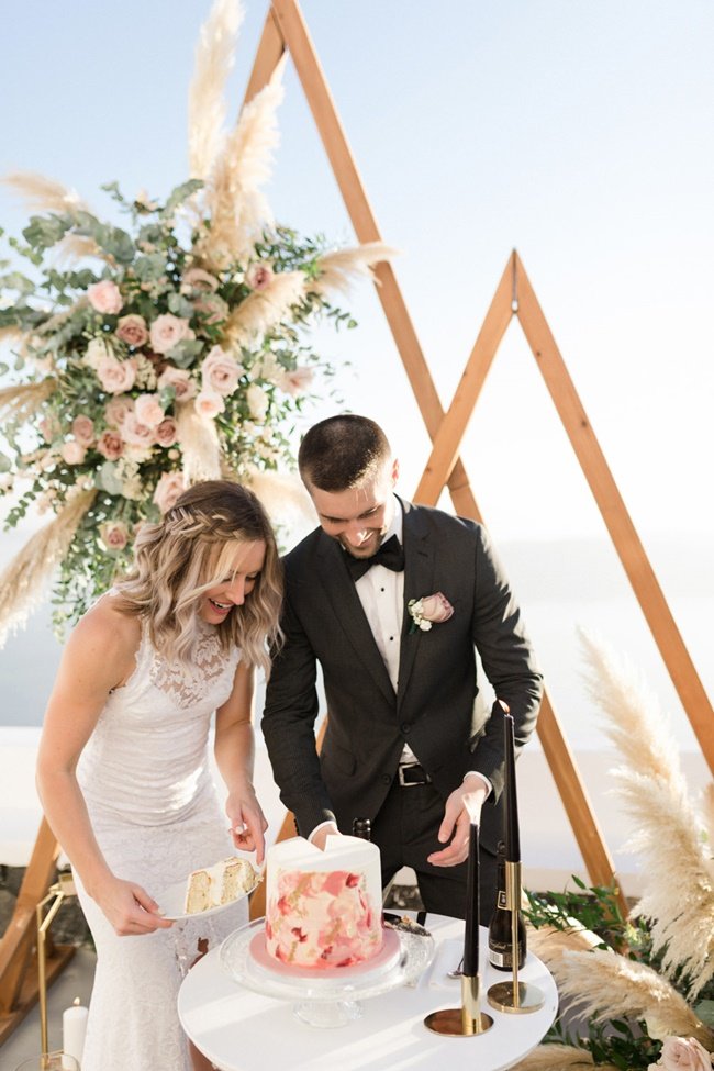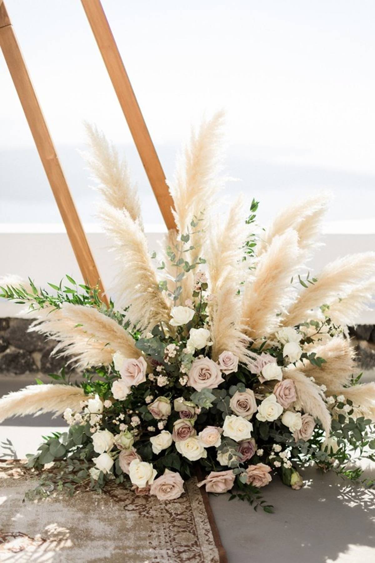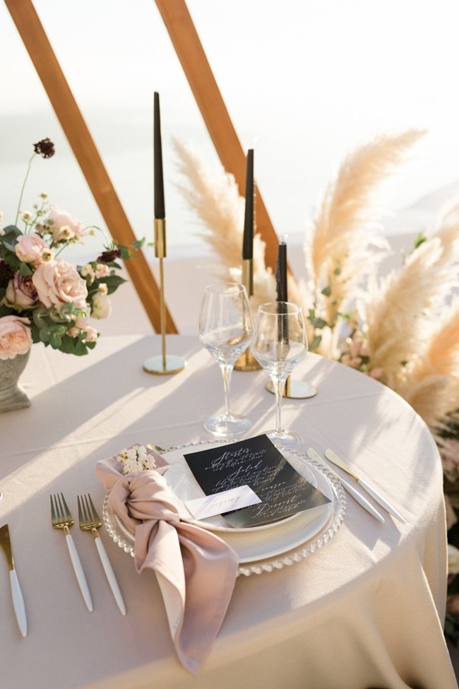 Our bride is super stylish and had a very clear idea about what she wanted so we followed her vision of a boho chic wedding, with luscious flowers and imposing pampas grass, dusty pinks, ivories and striking black details as well as an impressive wedding cake with splashes of coral.