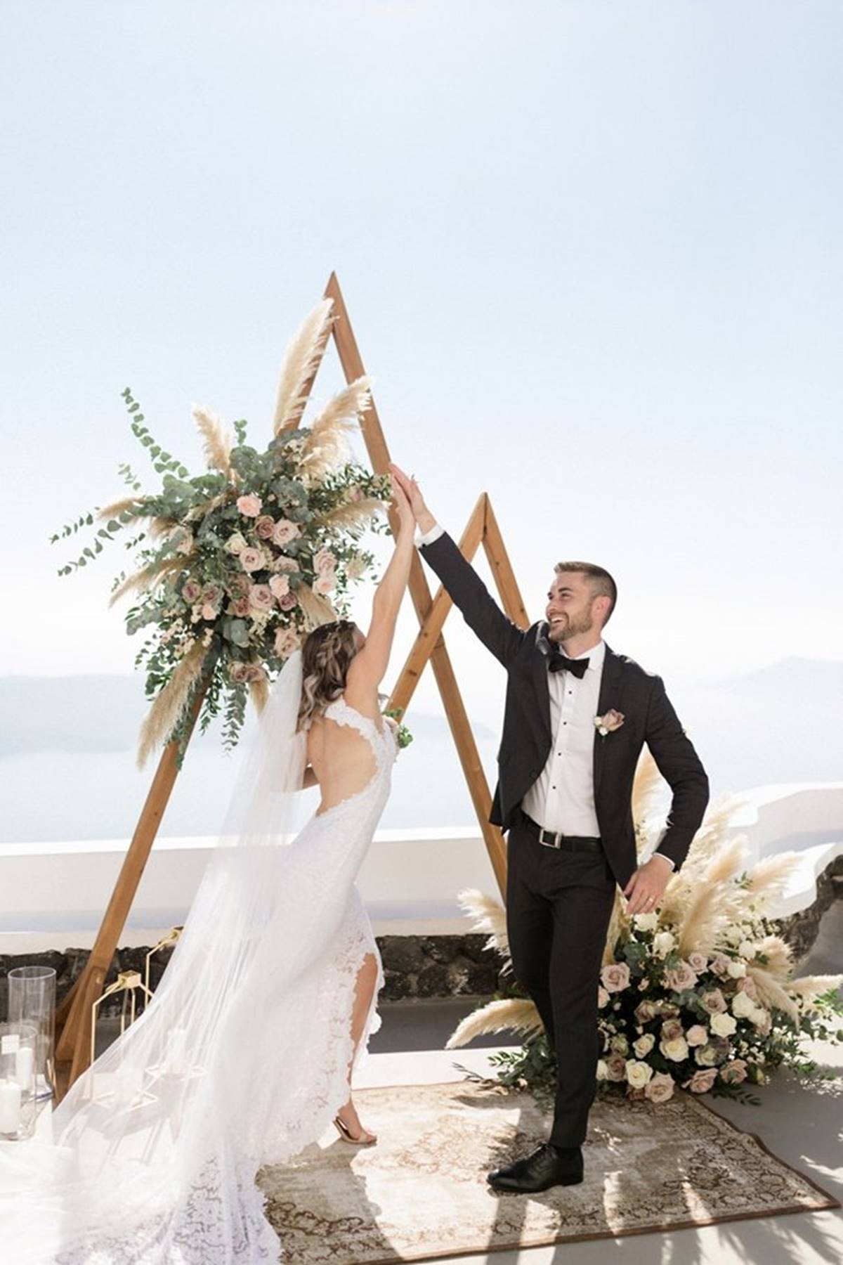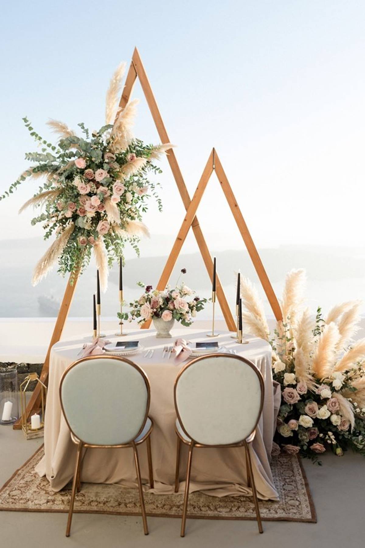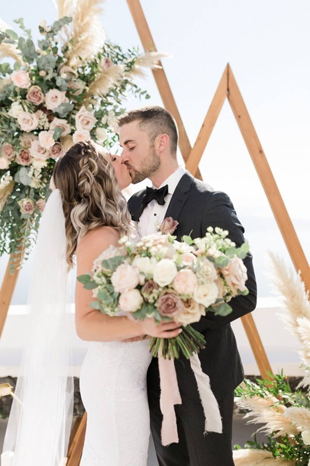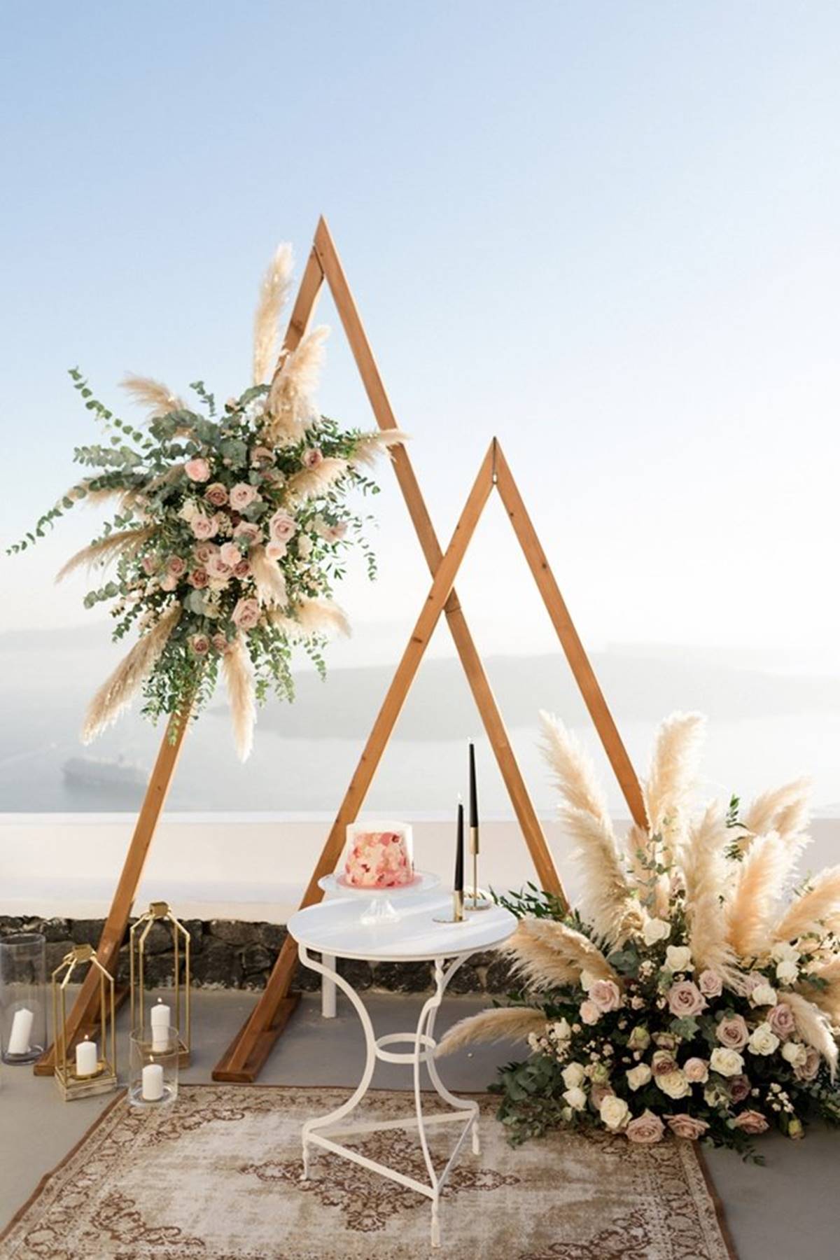 Our bride is super stylish and had a very clear idea about what she wanted so we followed her vision of a boho chic wedding, with luscious flowers and imposing pampas grass, dusty pinks, ivories and striking black details as well as an impressive wedding cake with splashes of coral.