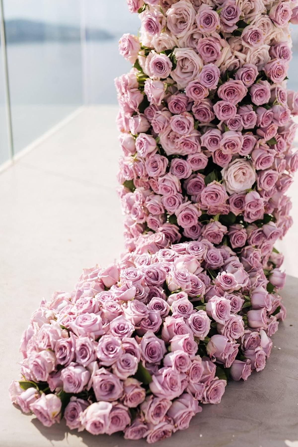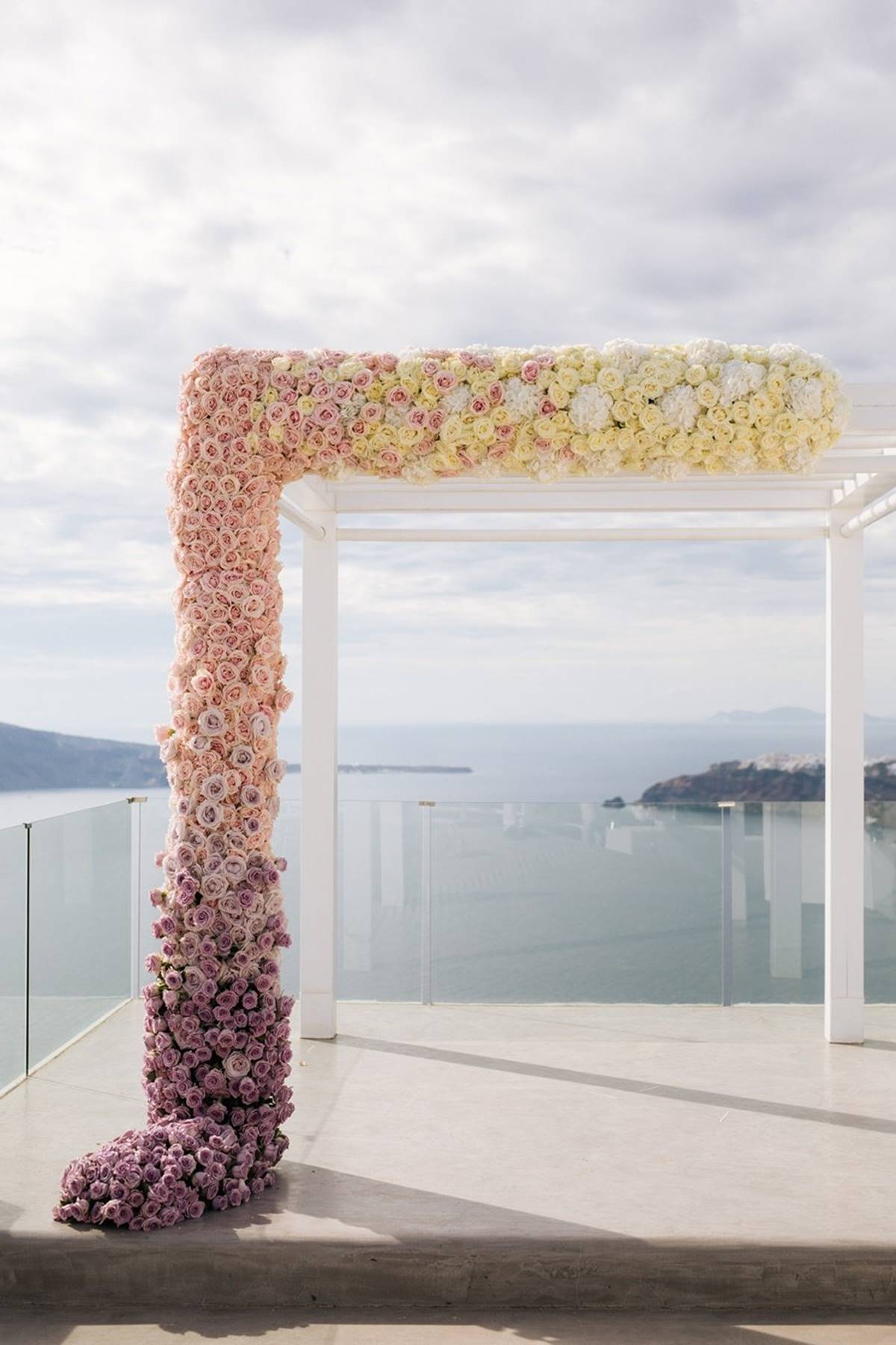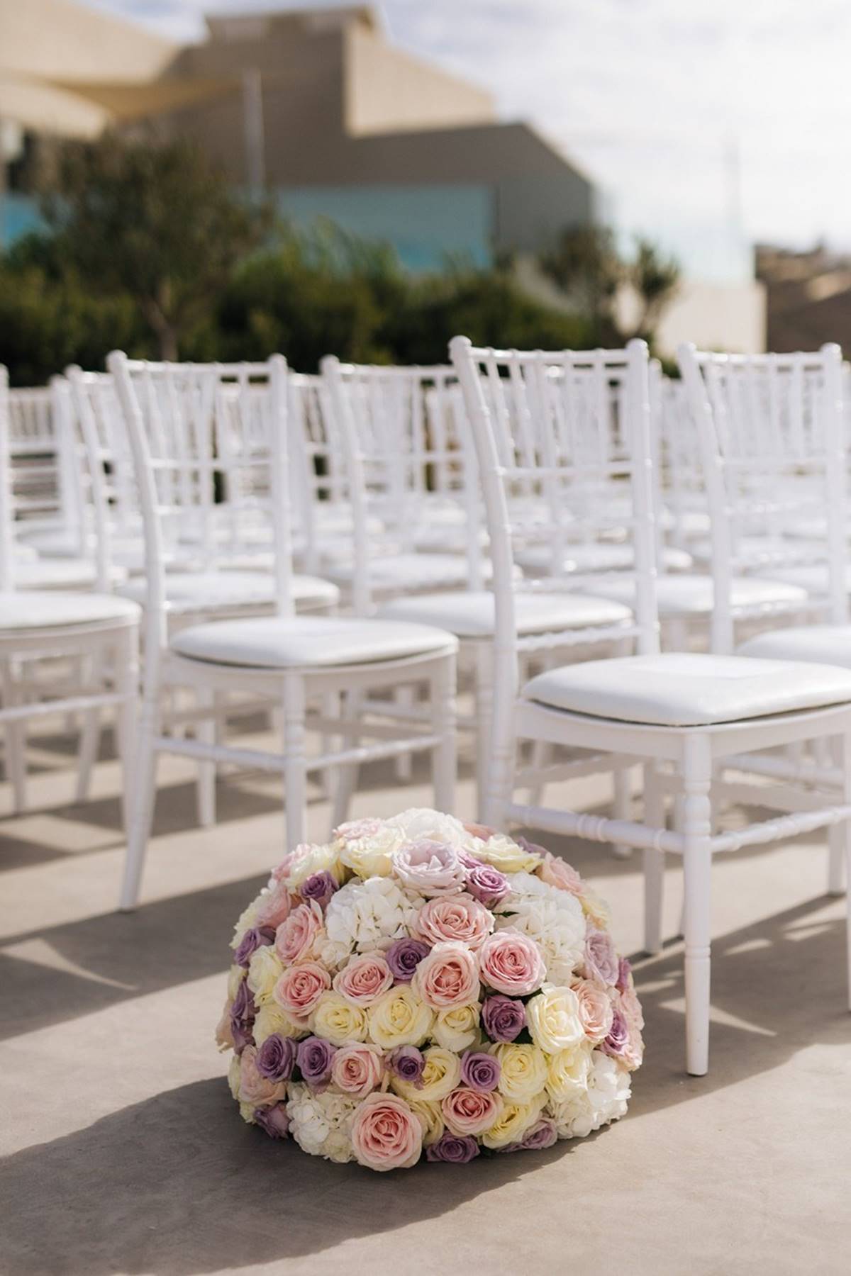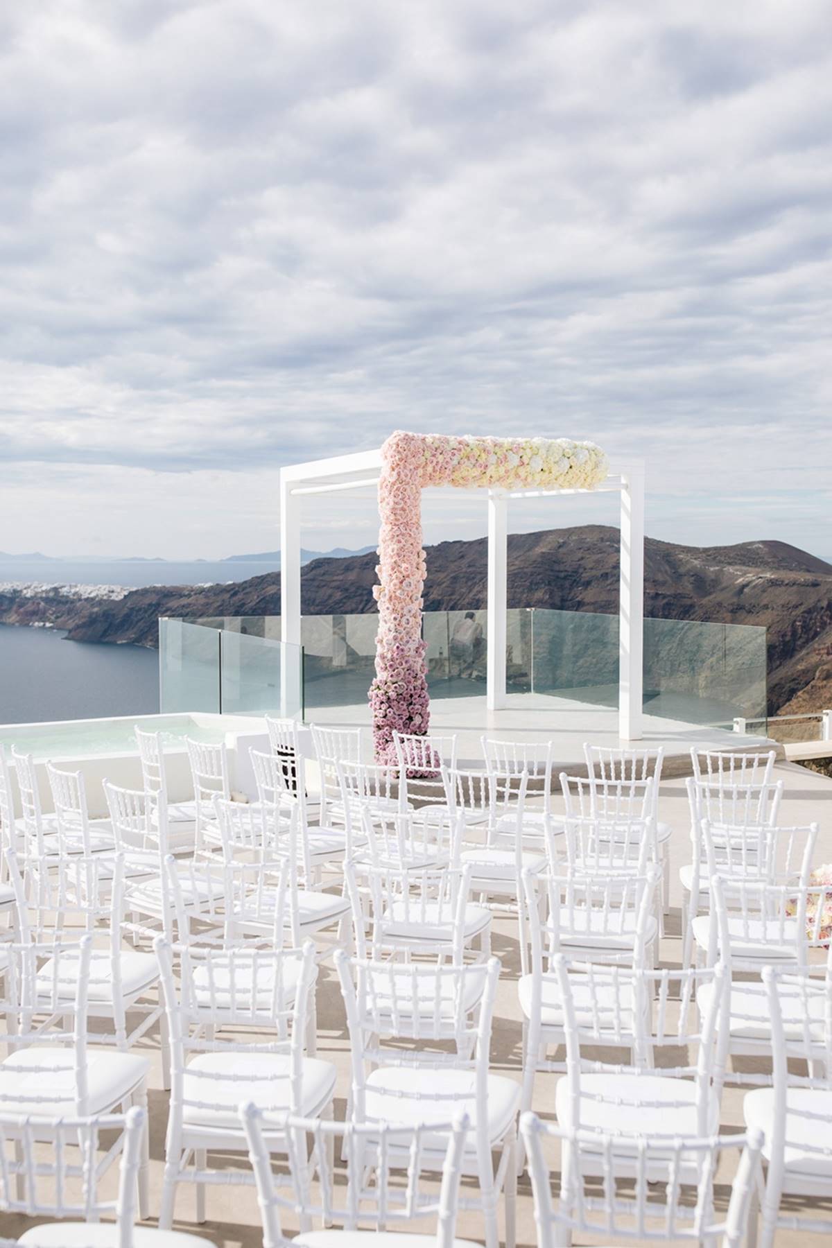 As the sun set behind the Santorini volcano, the guests enjoyed the reception décor and pink/lilac colours that filled Rocabella’s Infinity Pool terrace and Paul surprised Brittany in the most romantic way, with a live performance of Lady Gaga’s “Always Remember Us This Way”.