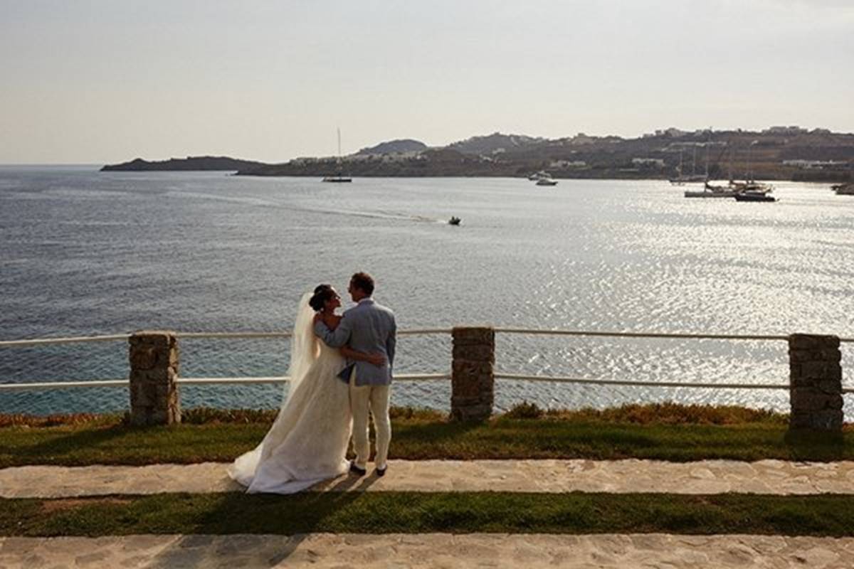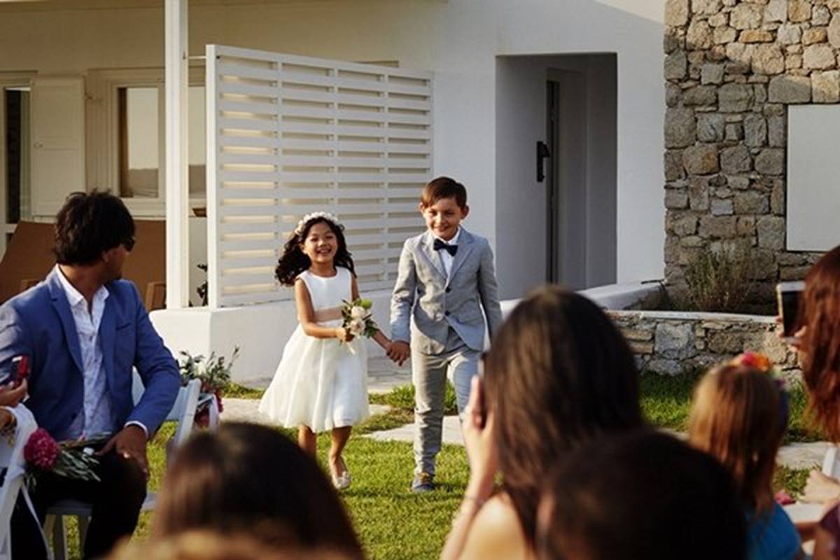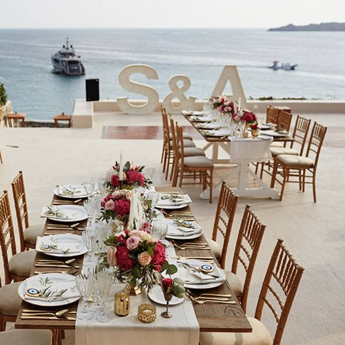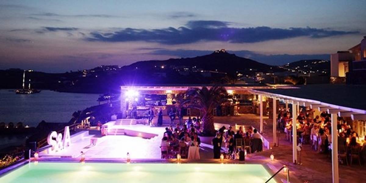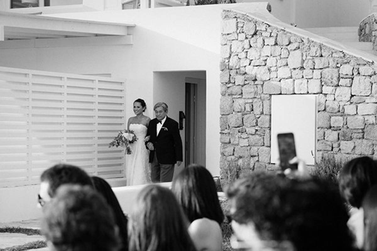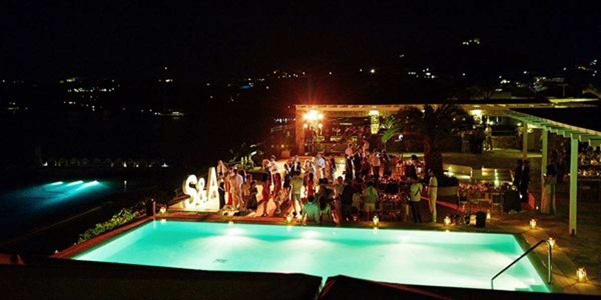 Sara and Alexis’ chic and elegant Mykonos wedding has it all – gorgeous styling, romance, fun, lot’s of Greek dancing and the unforgettable backdrop of one of the most beautiful islands in the world. The bright coloured flowers on the ceremony arch and the reception tables, all wonderfully arranged by Secret Garden, were the feature that really popped out against the blue colours of the Aegean sea and at the same time filled the open spaces of the Santa Marina Resort in Ornos bay. Weddings and Whimsy completed the styling with a luxurious flare, creating custom-made wooden signs, a photo booth, a programme and table plan, for that personalised touch that always makes a difference.