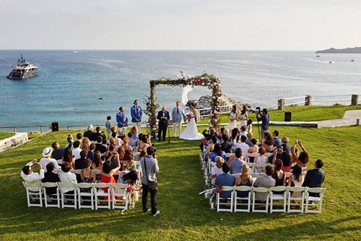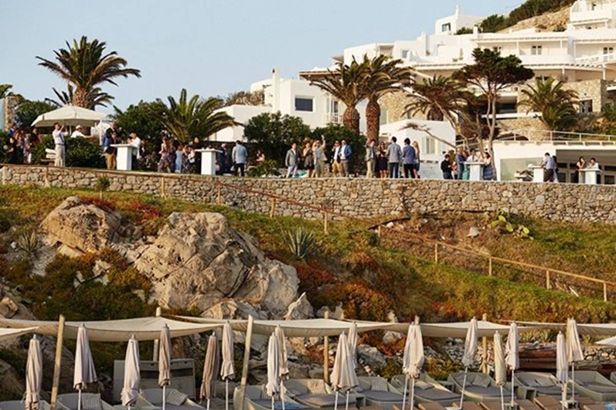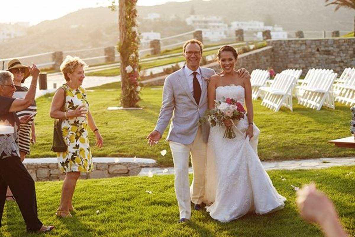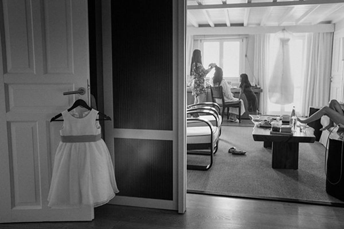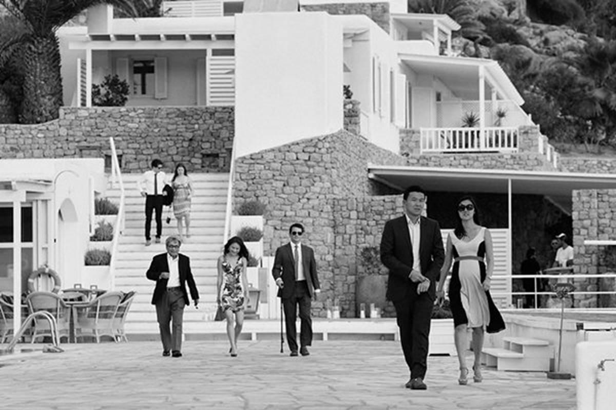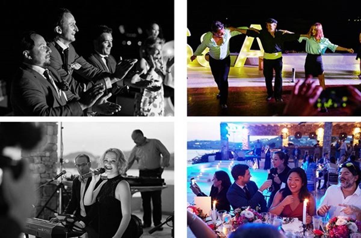 Sara and Alexis’ chic and elegant Mykonos wedding has it all – gorgeous styling, romance, fun, lot’s of Greek dancing and the unforgettable backdrop of one of the most beautiful islands in the world. The bright coloured flowers on the ceremony arch and the reception tables, all wonderfully arranged by Secret Garden, were the feature that really popped out against the blue colours of the Aegean sea and at the same time filled the open spaces of the Santa Marina Resort in Ornos bay. Weddings and Whimsy completed the styling with a luxurious flare, creating custom-made wooden signs, a photo booth, a programme and table plan, for that personalised touch that always makes a difference.