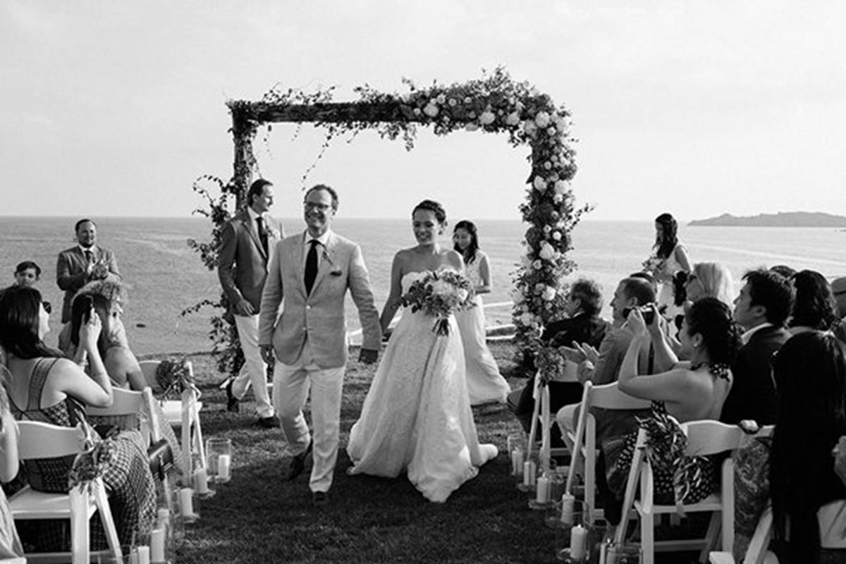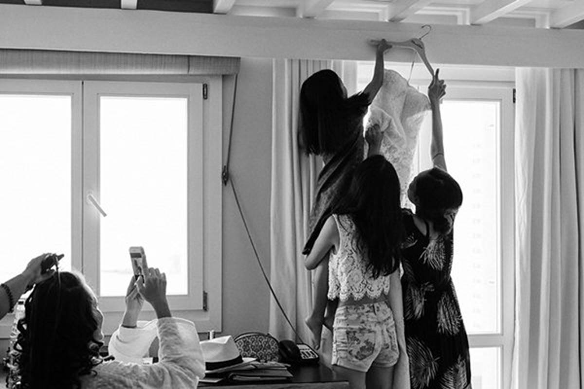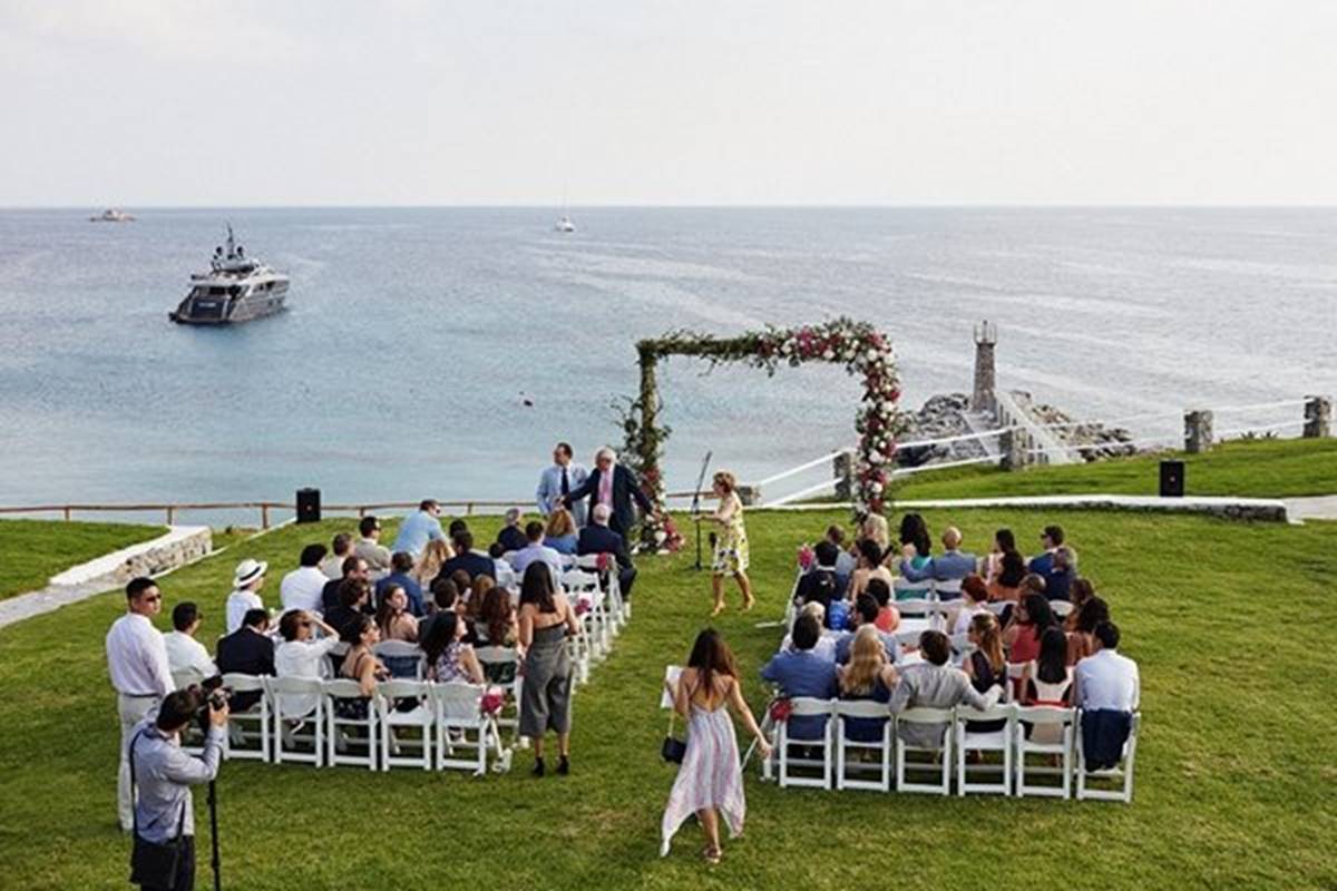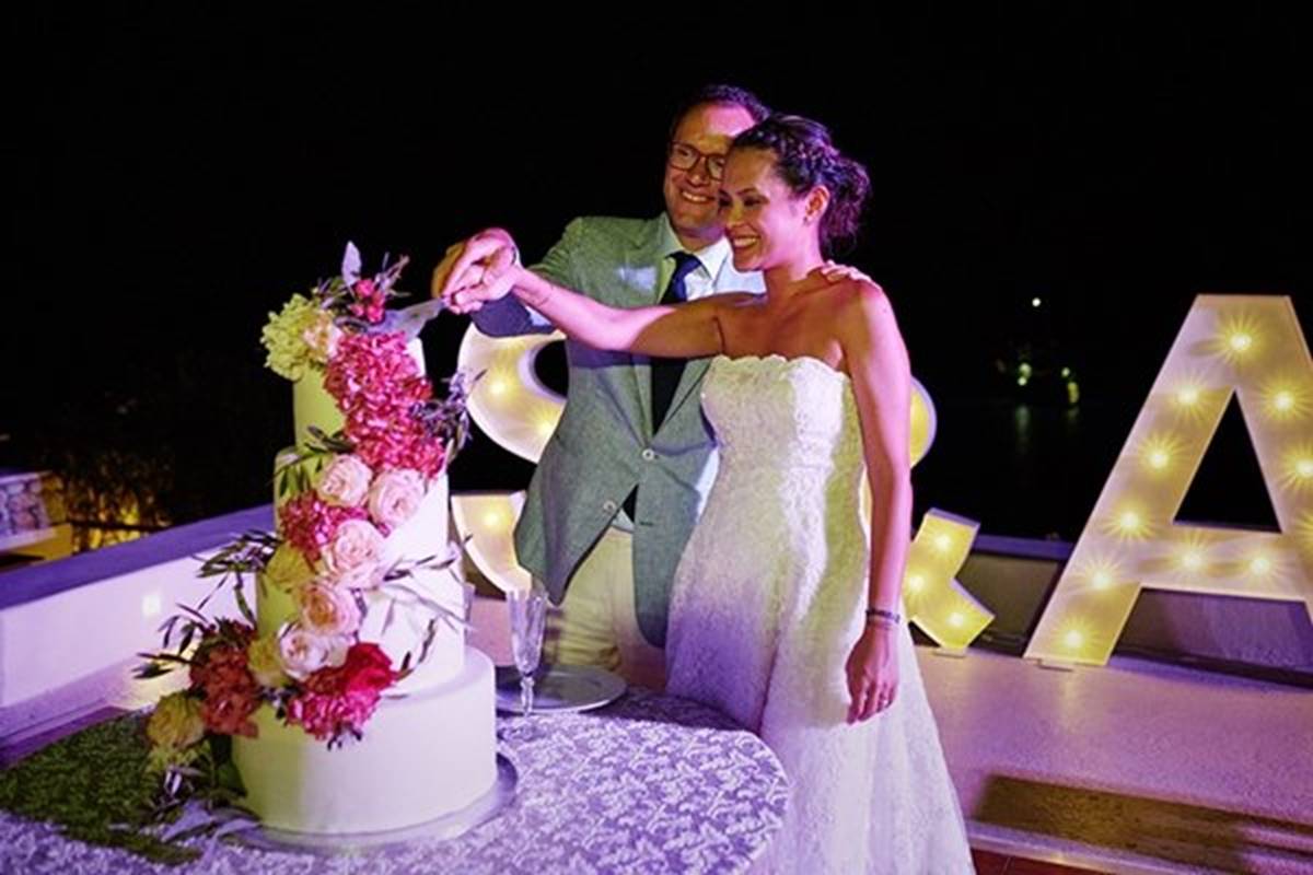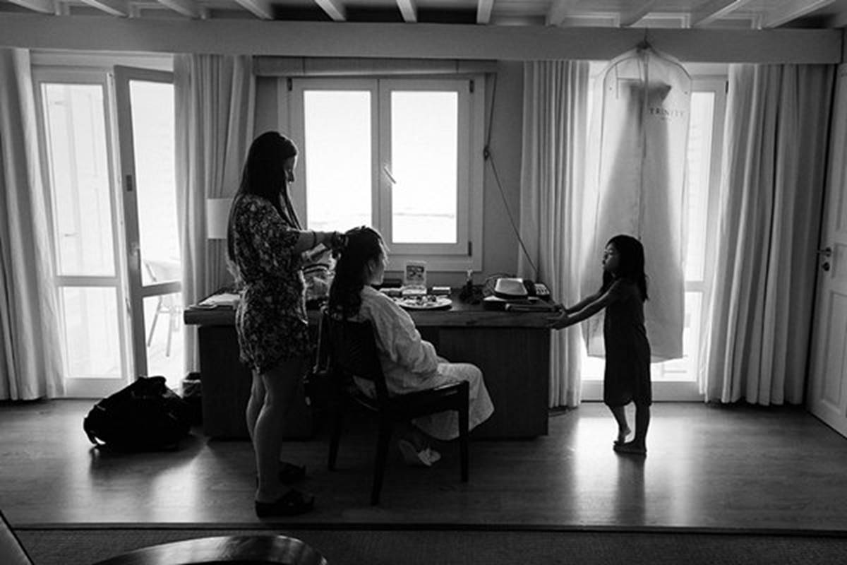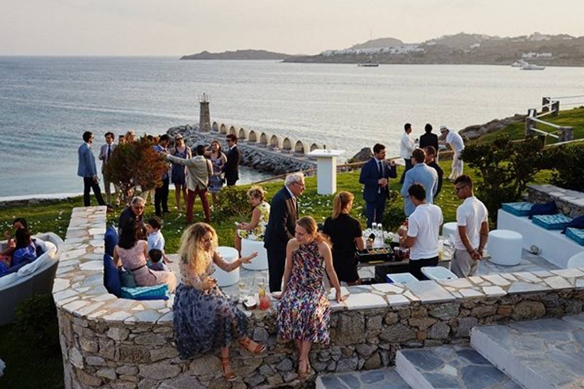 Sara and Alexis’ chic and elegant Mykonos wedding has it all – gorgeous styling, romance, fun, lot’s of Greek dancing and the unforgettable backdrop of one of the most beautiful islands in the world. The bright coloured flowers on the ceremony arch and the reception tables, all wonderfully arranged by Secret Garden, were the feature that really popped out against the blue colours of the Aegean sea and at the same time filled the open spaces of the Santa Marina Resort in Ornos bay. Weddings and Whimsy completed the styling with a luxurious flare, creating custom-made wooden signs, a photo booth, a programme and table plan, for that personalised touch that always makes a difference.