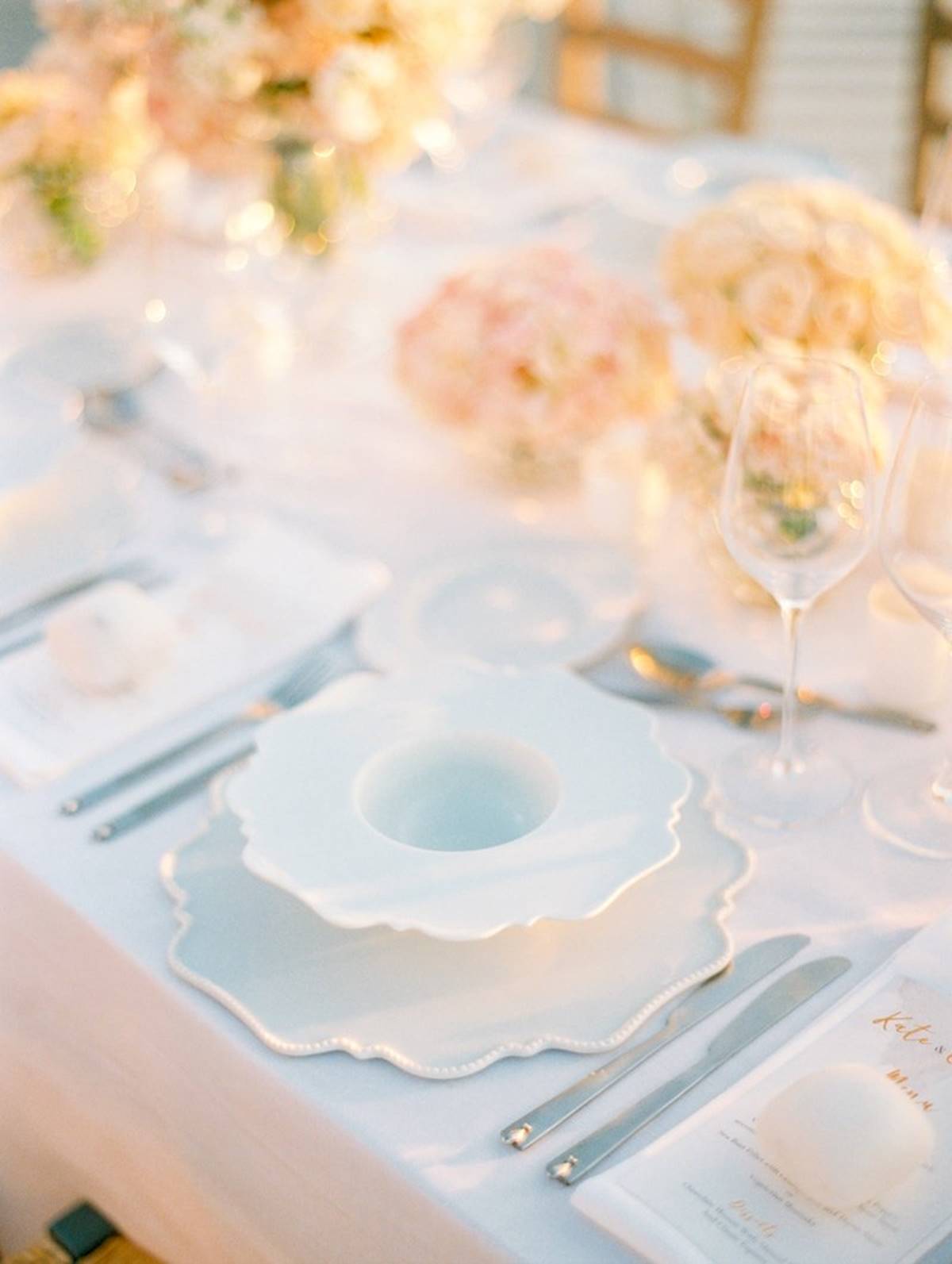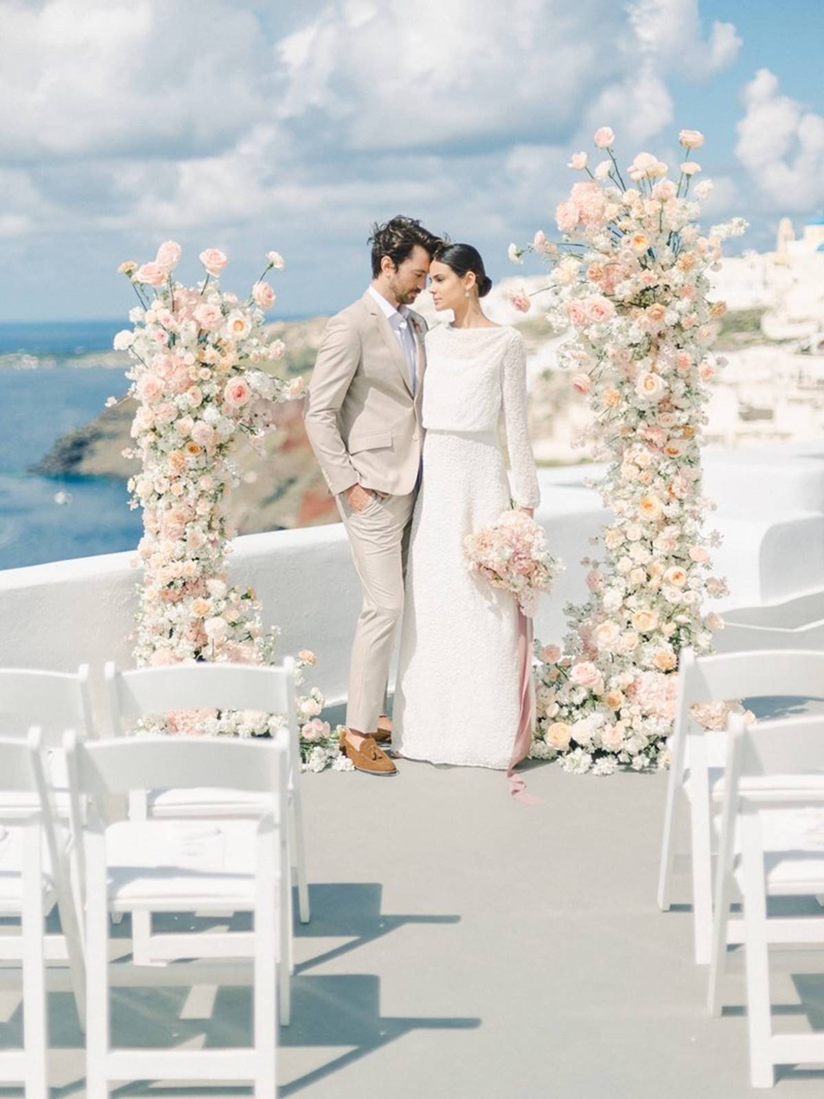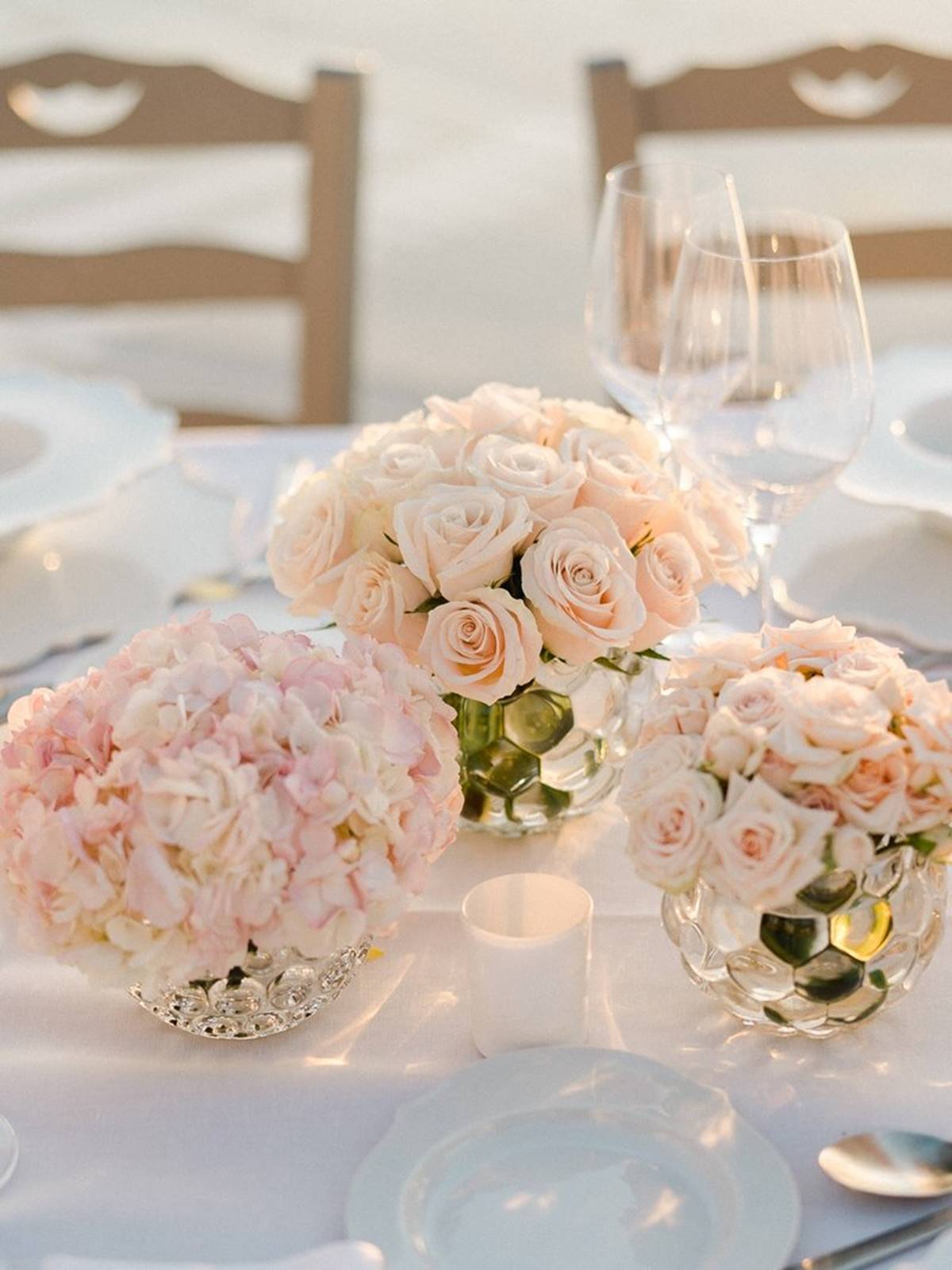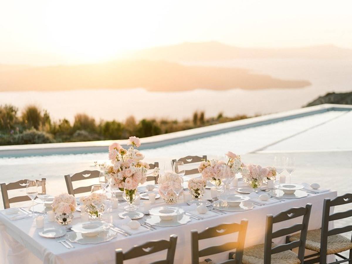 Romantic pinks and ivories combined with light grays, golds, precious stones and lace complete the perfect summer picture for a chic and sophisticated wedding in the world capital of magical sunsets.