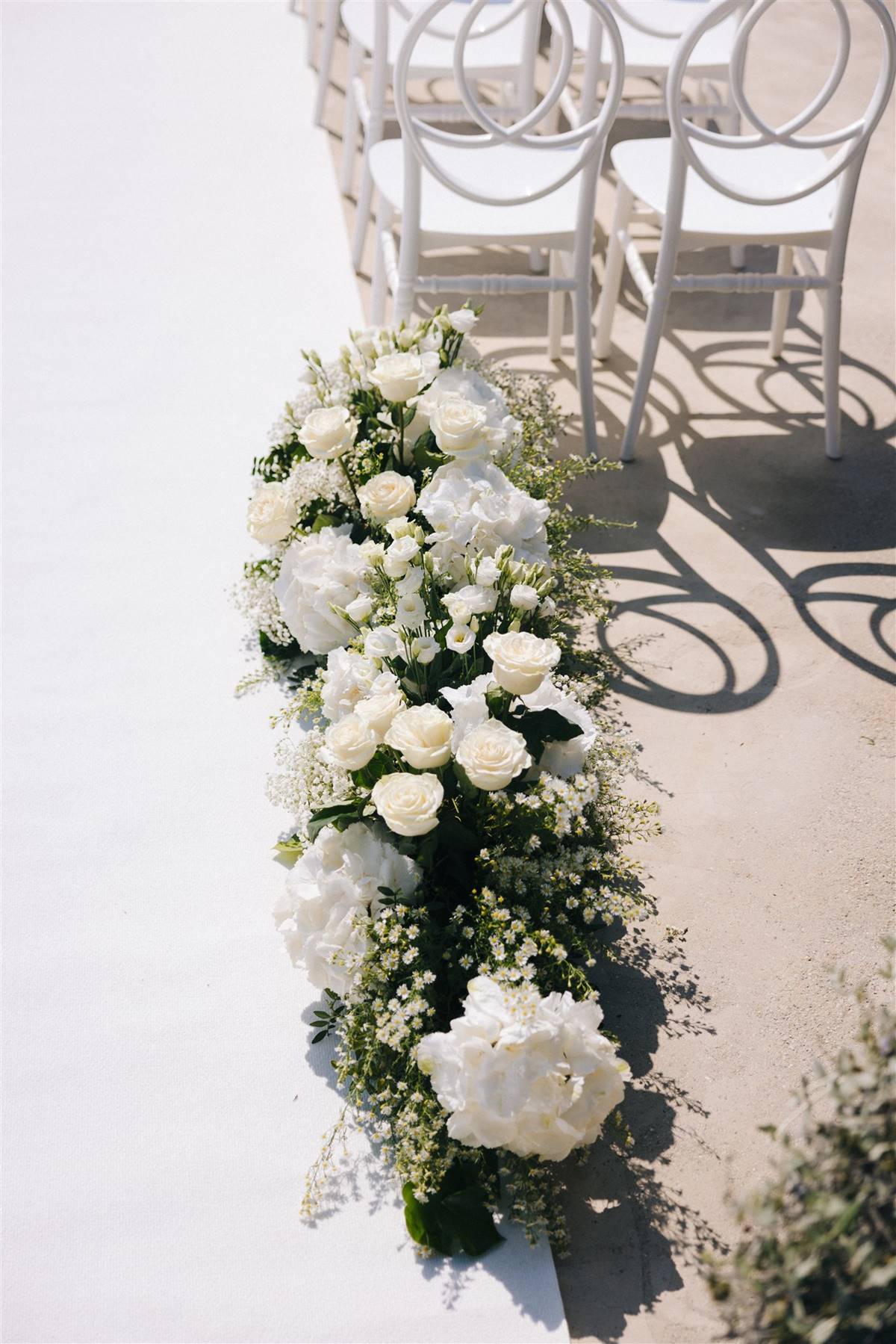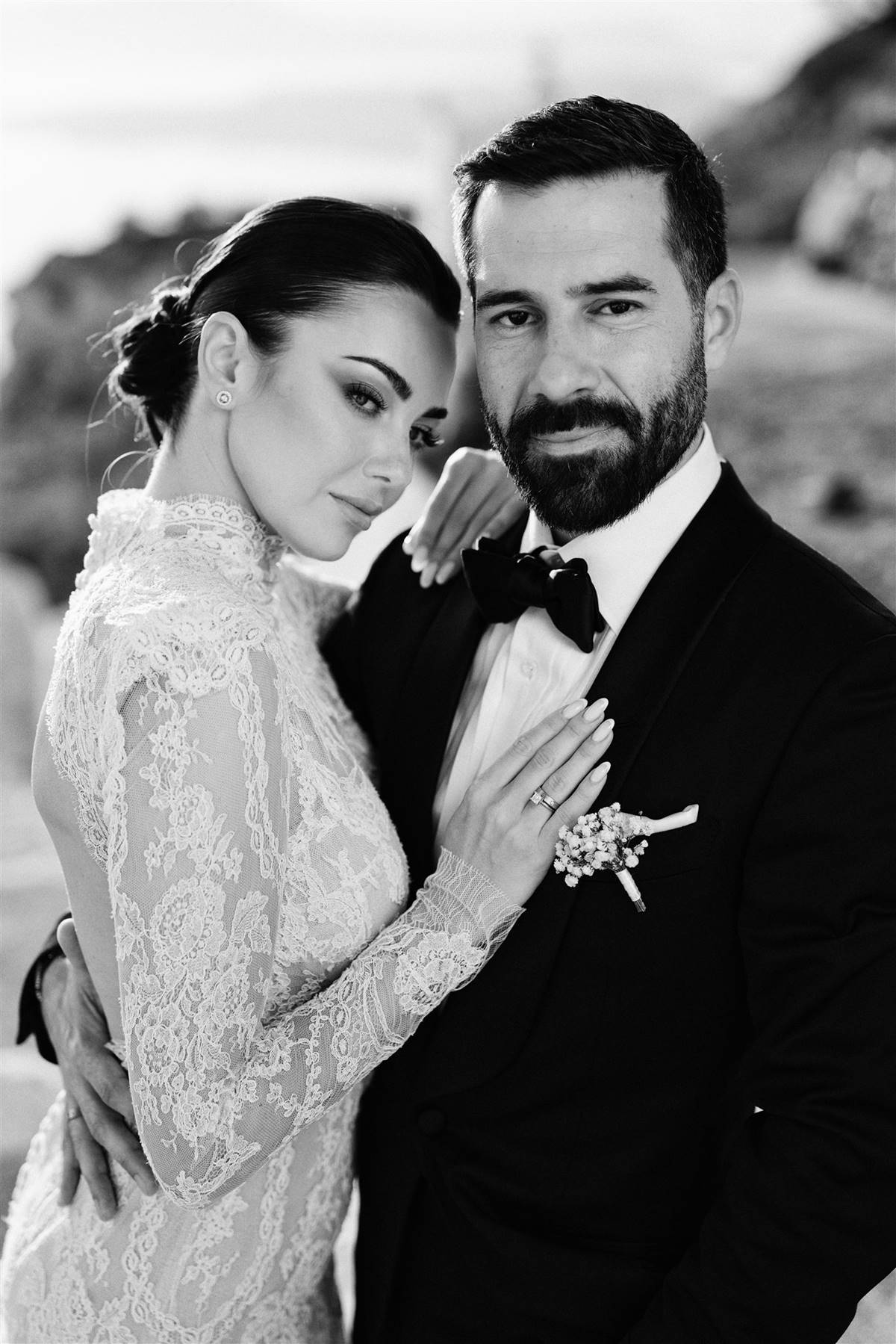 Julia, originally from Ukraine, brought her own elegance and beauty to this Greece destination wedding, making their love story even more extraordinary. Despite the challenges they faced—having to postpone their wedding due to the war in their homeland—their love remained steadfast. The couple's wedding at Villa Nafsika symbolized not just the union of two people, but the triumph of love over adversity, making it an unforgettable Santorini glamorous wedding that transcended borders and difficulties.