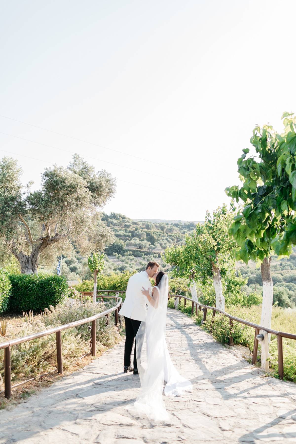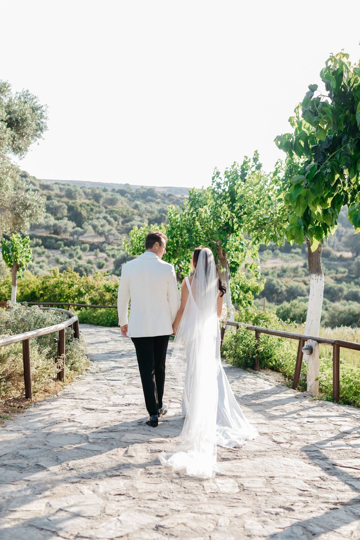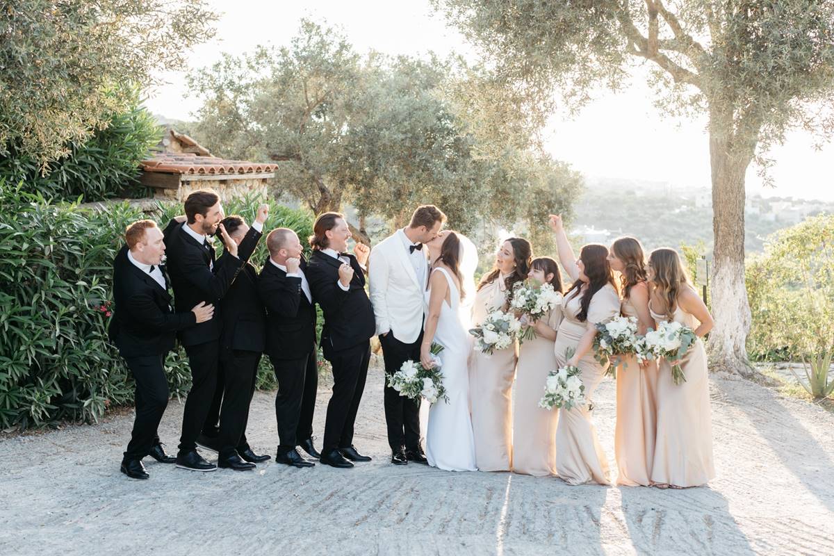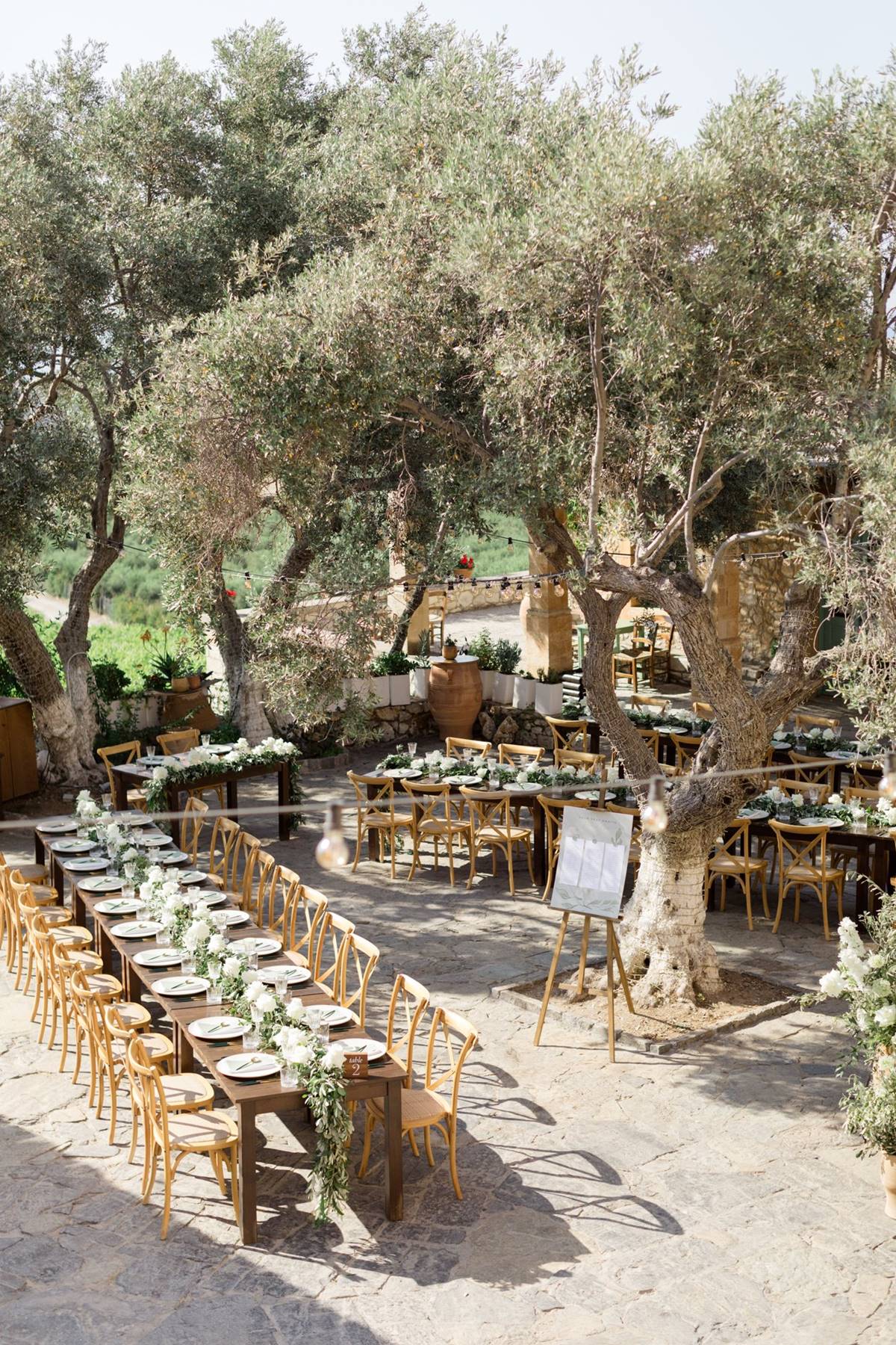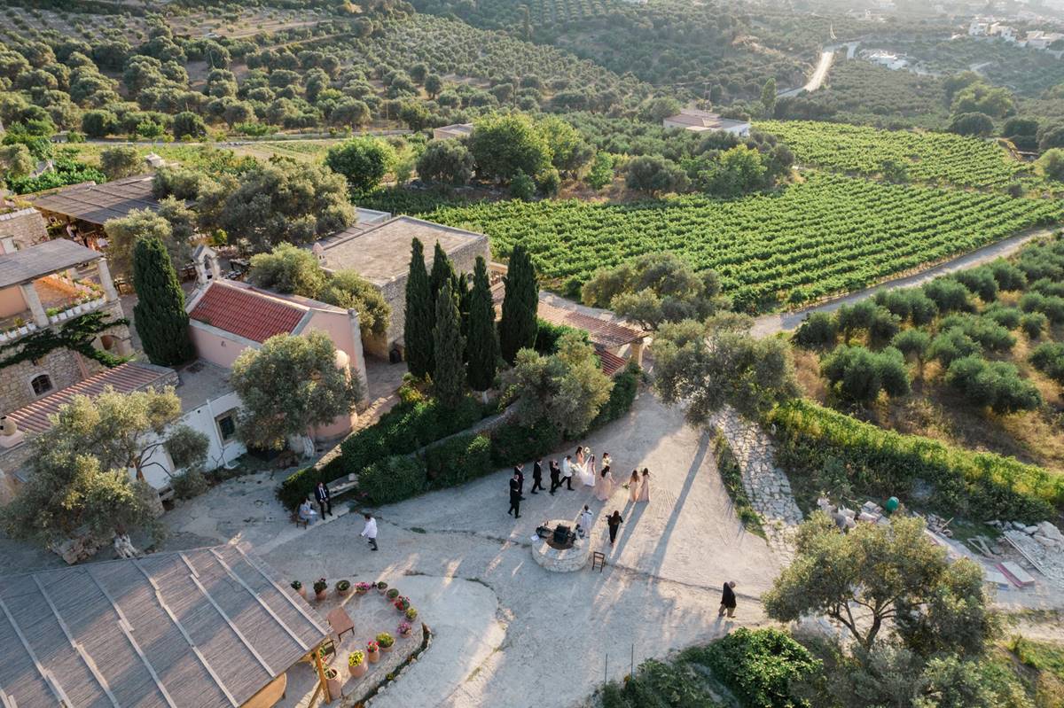 A quintessential Crete wedding celebration of love amidst ancient olive trees and vineyards in the heart of the Greek islands! This overly romantic Greek-American wedding was a dream come true for the sweet couple and their families at the stunning Agreco farm. The venue offered perfect olive grove wedding inspiration, where nature's beauty and organic styling came together in harmony. As the couple walked through the farm, guests were immersed in the timeless allure of the Mediterranean, with the scents of olive groves and whispers of vineyards adding a magical touch to the festivities.