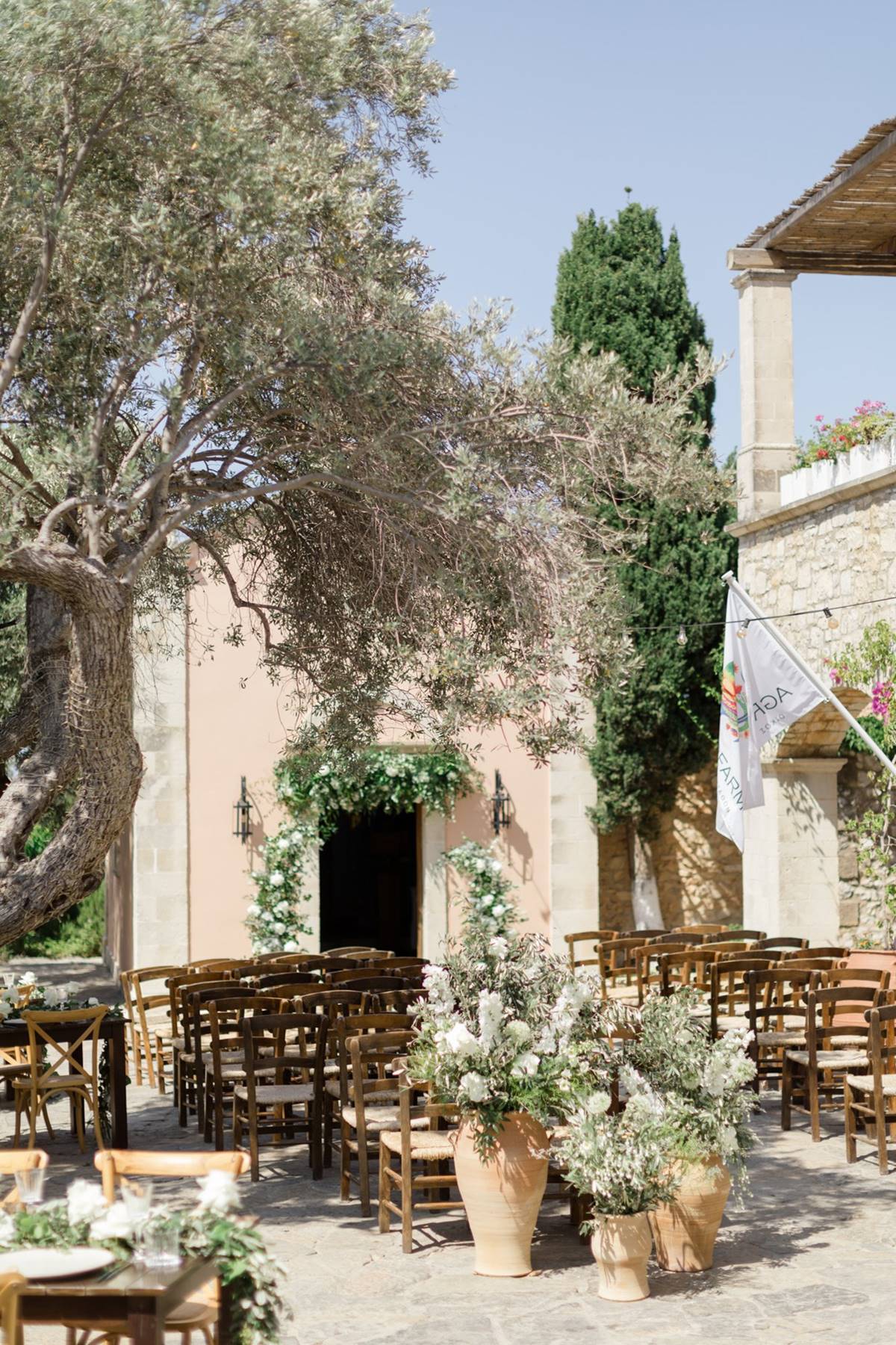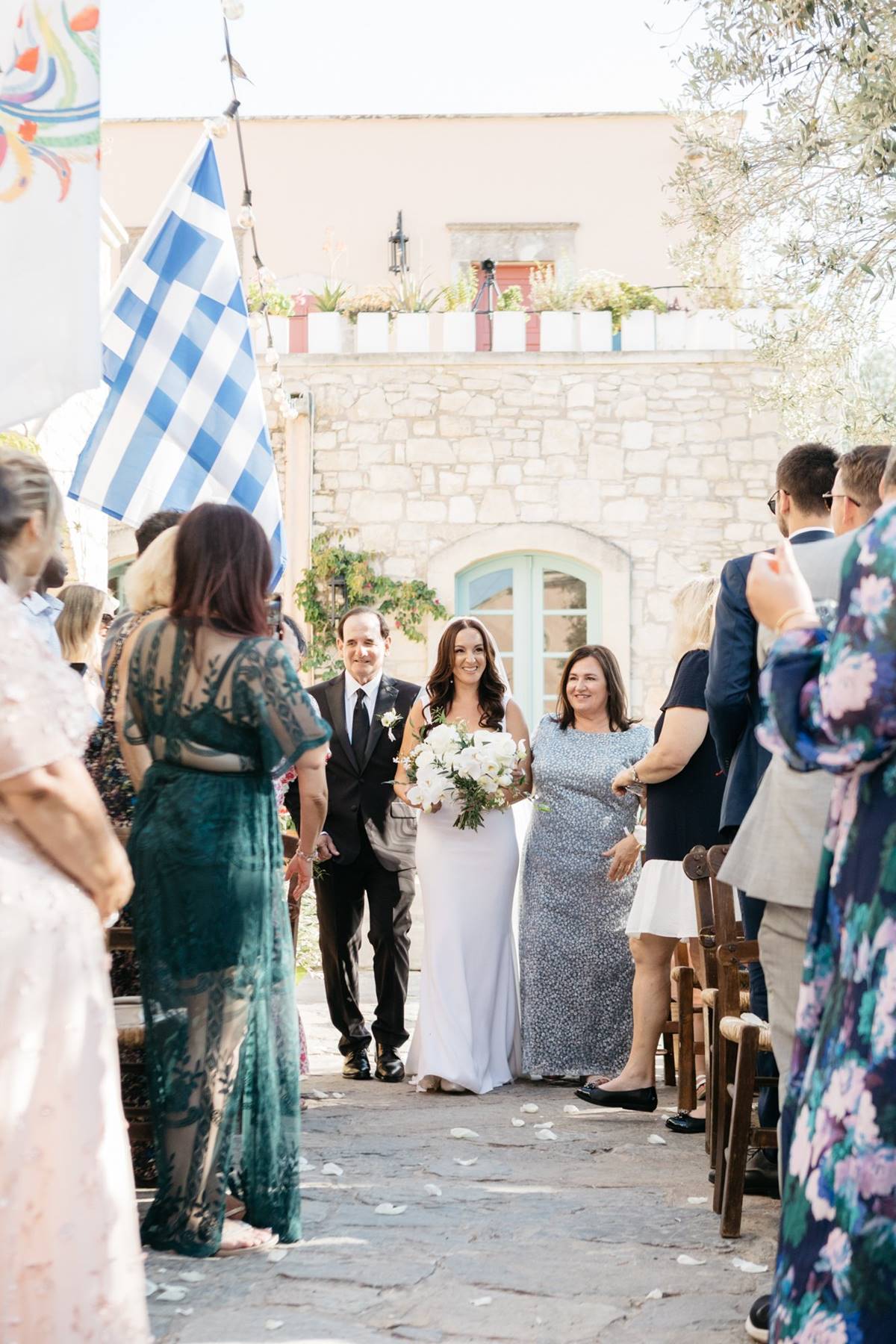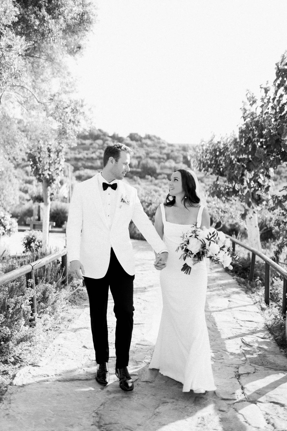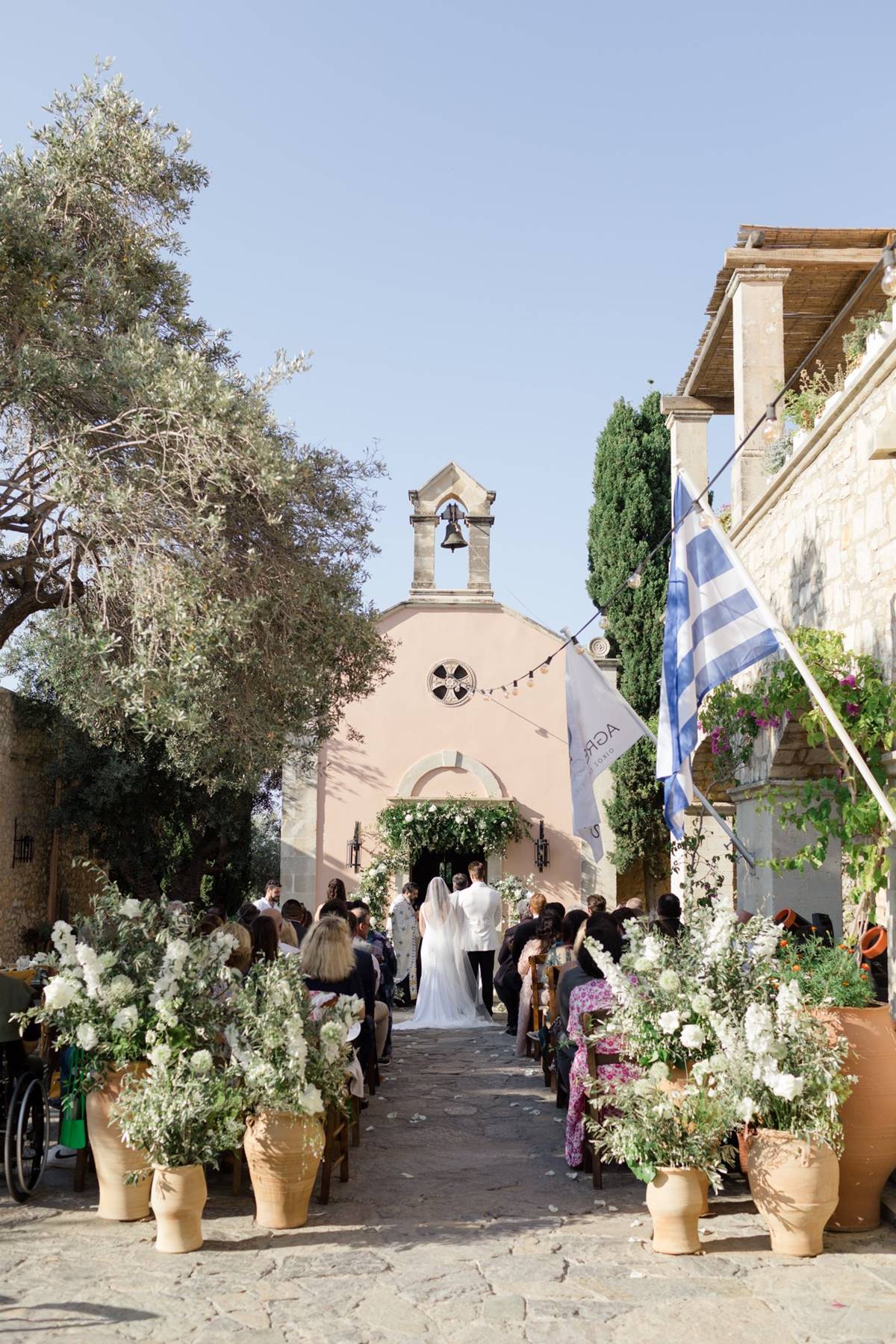 A quintessential Crete wedding celebration of love amidst ancient olive trees and vineyards in the heart of the Greek islands! This overly romantic Greek-American wedding was a dream come true for the sweet couple and their families at the stunning Agreco farm. The venue offered perfect olive grove wedding inspiration, where nature's beauty and organic styling came together in harmony. As the couple walked through the farm, guests were immersed in the timeless allure of the Mediterranean, with the scents of olive groves and whispers of vineyards adding a magical touch to the festivities.