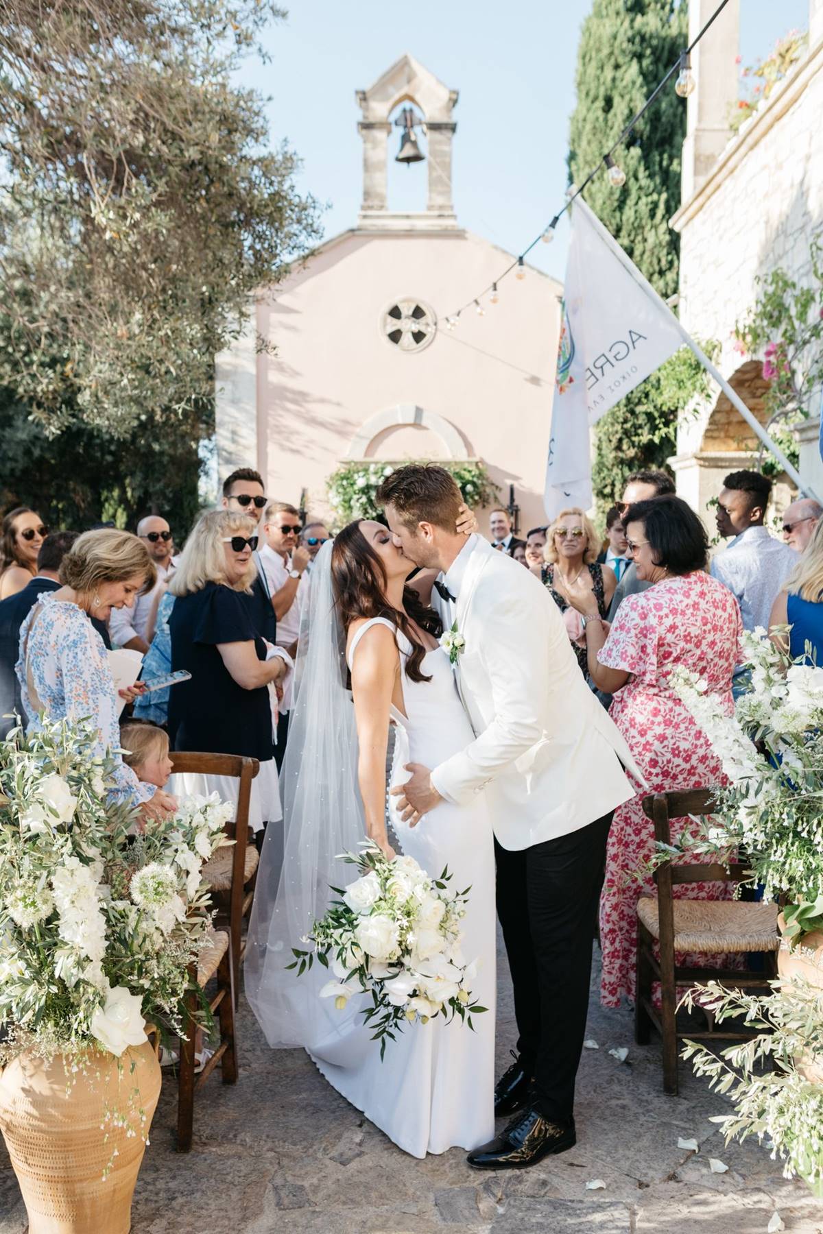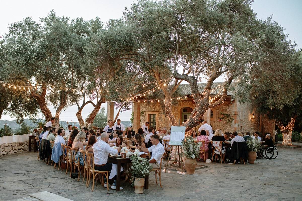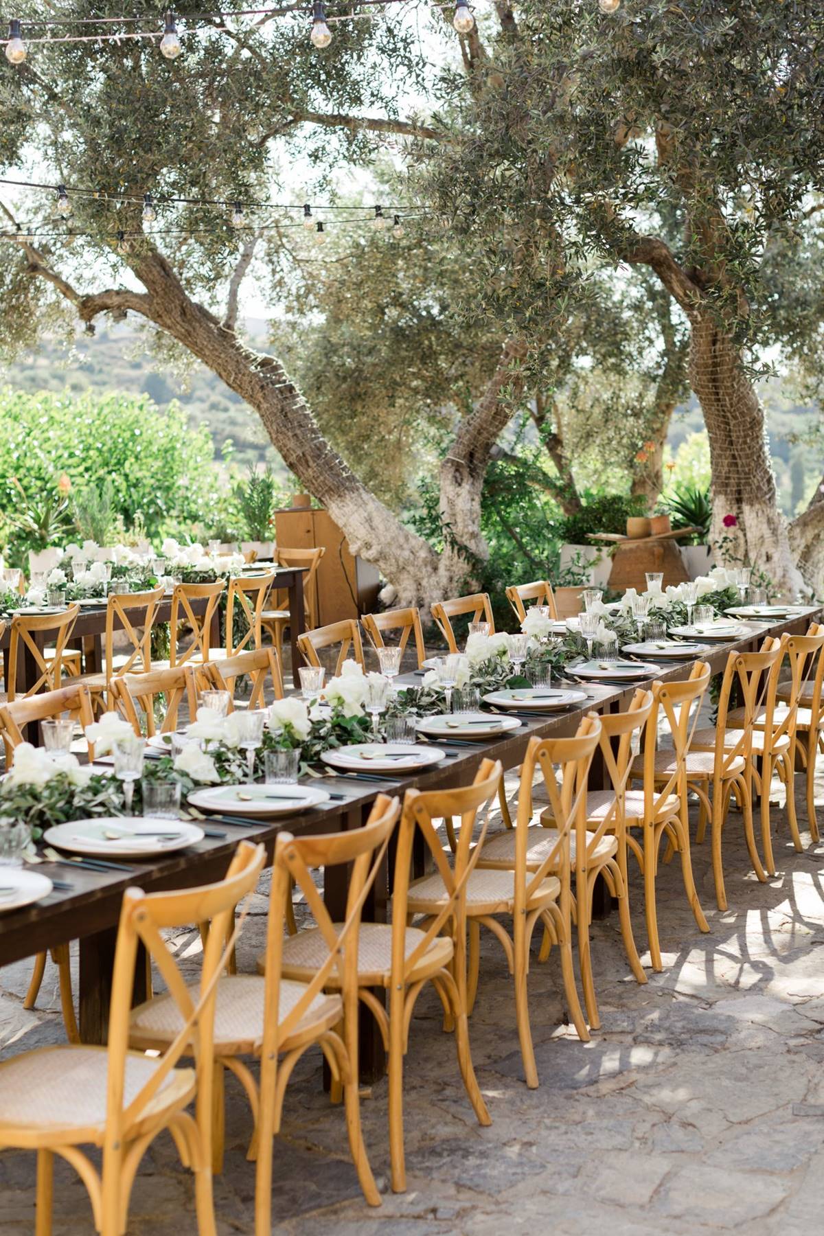 Agreco farm served as the perfect backdrop for a rustic and traditional Greek island wedding, with silvery olive leaves matching the landscape, enhanced by local music and wine. The charm of the farm made it ideal for those seeking a farm wedding with authentic Greek touches.